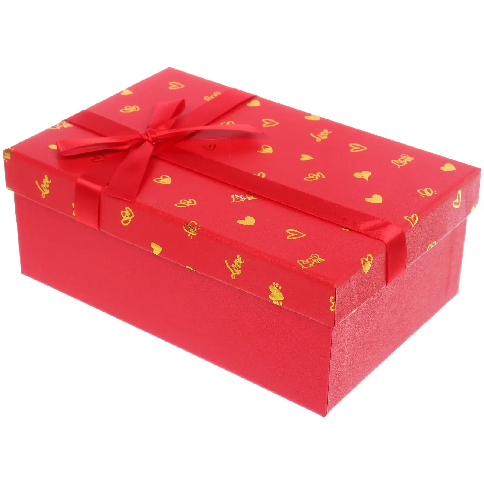 Коробка имеет прямоугольную форму и размеры 21х14х8 см, что делает её достаточно вместительной для различных подарков. Она идеально подходит для упаковки как небольших, так и средних по размеру предметов. Красный атласный бант добавляет изысканности и делает коробку ещё более привлекательной. Используйте её для упаковки подарков для близких, друзей или коллег — она станет прекрасным дополнением к любому сюрпризу.