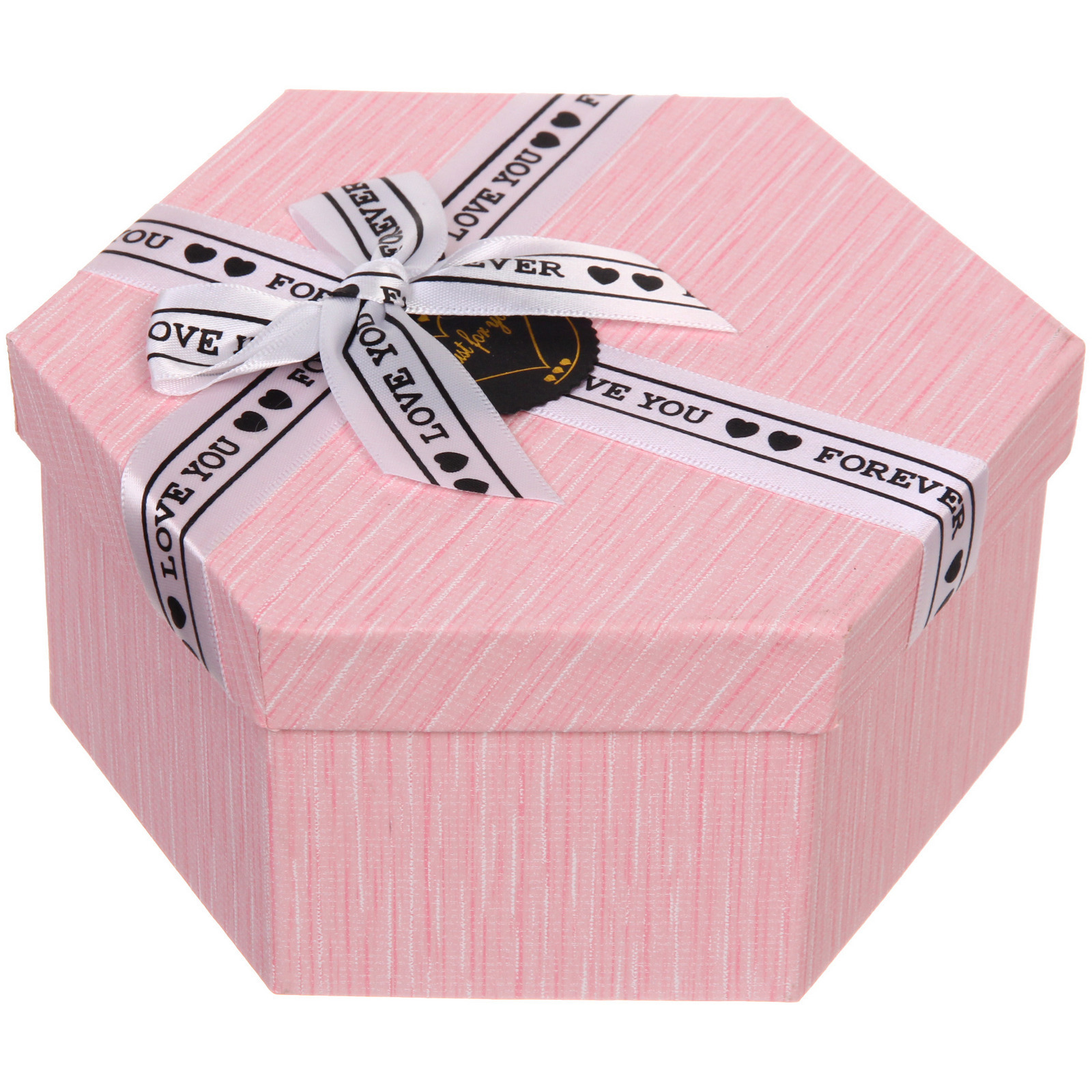 Почему стоит выбрать именно эту коробку? Во-первых, её уникальный дизайн с бантом и надписями «LOVE YOU» и «FOREVER» делает её идеальной для подарков любимым. Во-вторых, качественный картон обеспечивает долговечность и надежность, а текстурированная поверхность добавляет тактильные ощущения. Коробка легко закрывается и открывается, что делает процесс упаковки простым и быстрым.