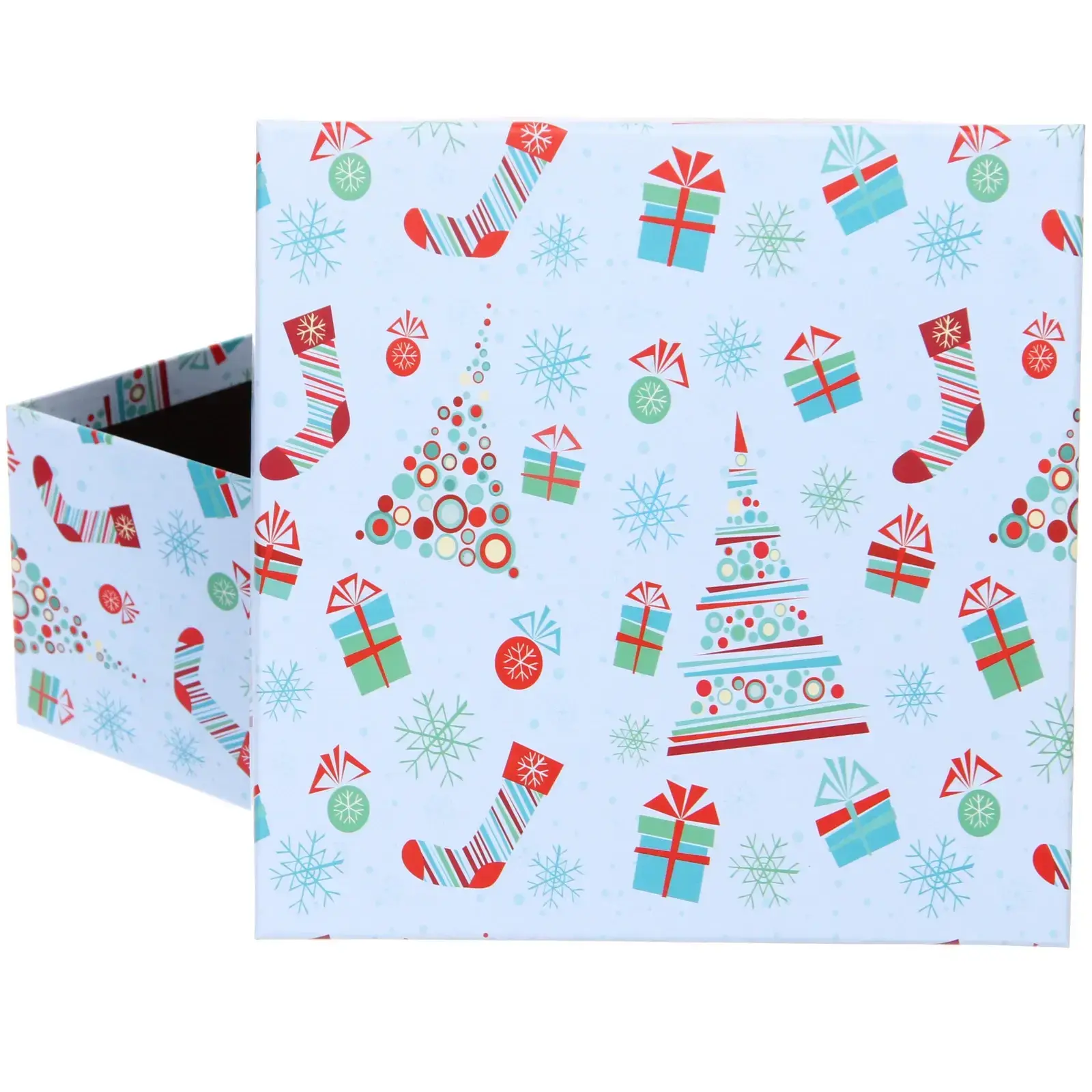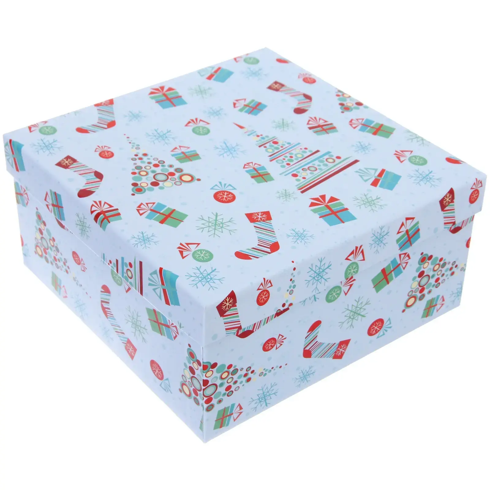 Коробка изготовлена из качественного картона, который сохранит свою форму и презентабельный вид в течение всего праздничного сезона.