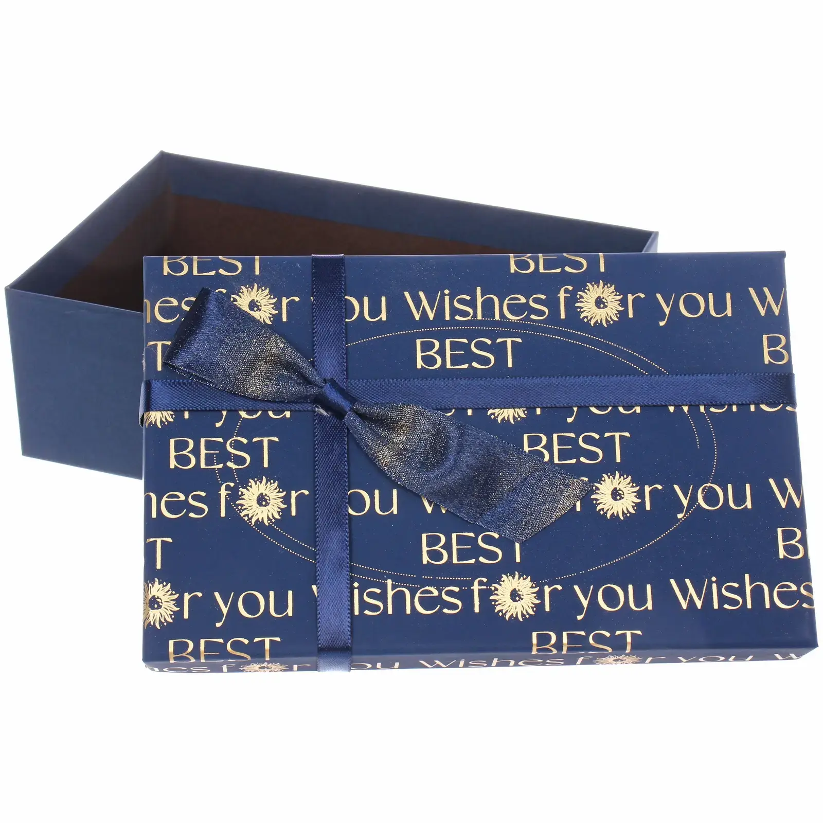 Создайте незабываемый момент с элегантной подарочной коробкой 'Послание'. Её благородный тёмно-синий цвет в сочетании с золотыми акцентами подчеркнёт значимость вашего презента.