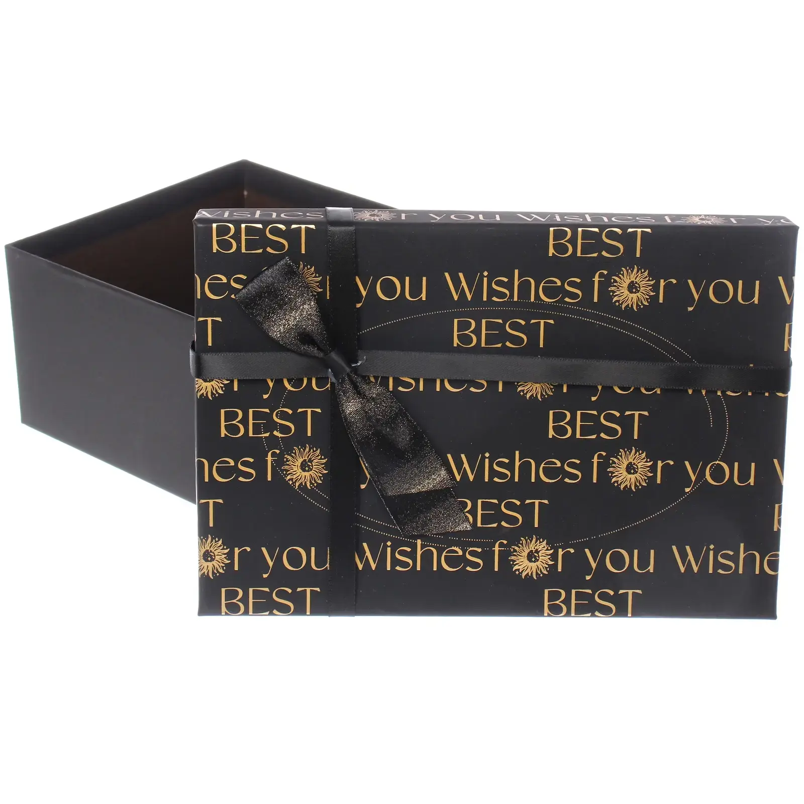 Материал: высококачественный плотный картон с матовым покрытием. Дизайн крышки украшен повторяющимся текстом 'BEST wishes for you', создающим праздничное настроение.