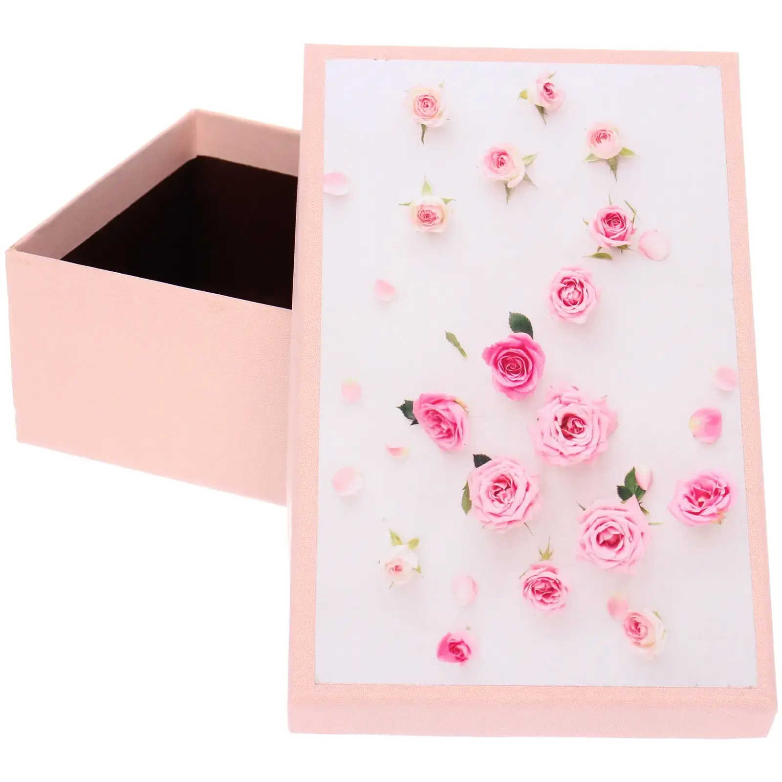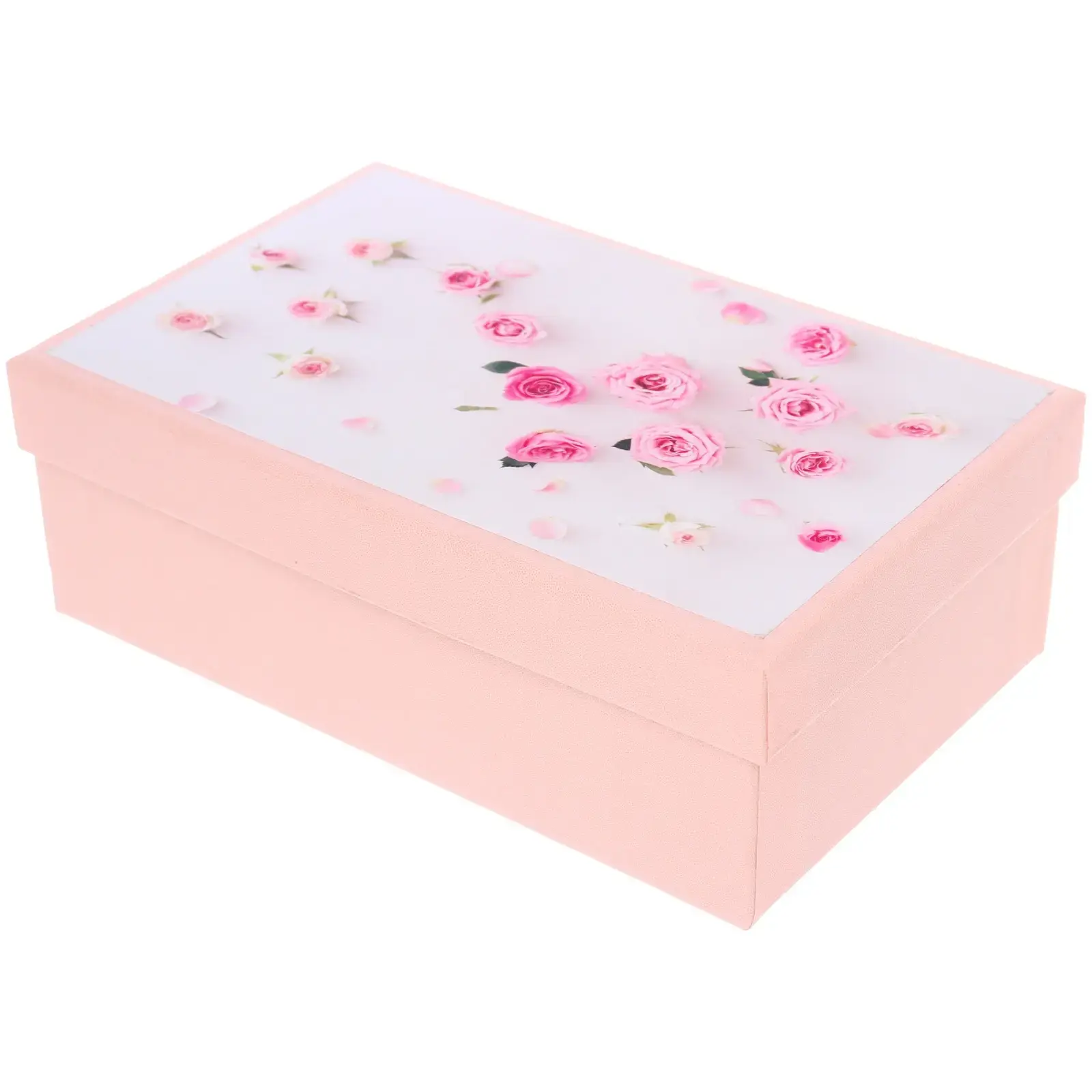 Коробка подарочная «Розочки» 19х12х6.5 см, картон, розовый/белый с цветочным декором