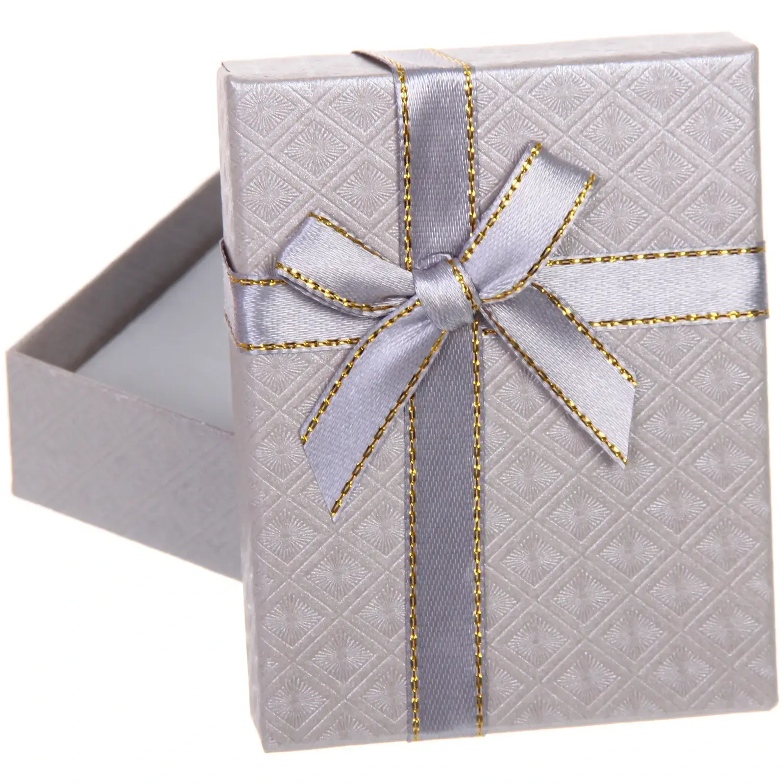 Почему стоит выбрать именно эту коробку? Во-первых, она изготовлена из качественного картона, что обеспечивает надёжность и долговечность. Во-вторых, её стильный дизайн с бантиком из светло-серой ленты с золотистыми полосками добавляет изысканности и делает упаковку ещё более привлекательной. В-третьих, такая коробка легко открывается и закрывается, что упрощает процесс упаковки.