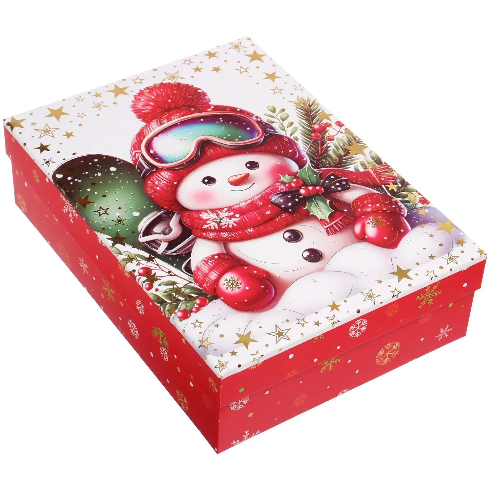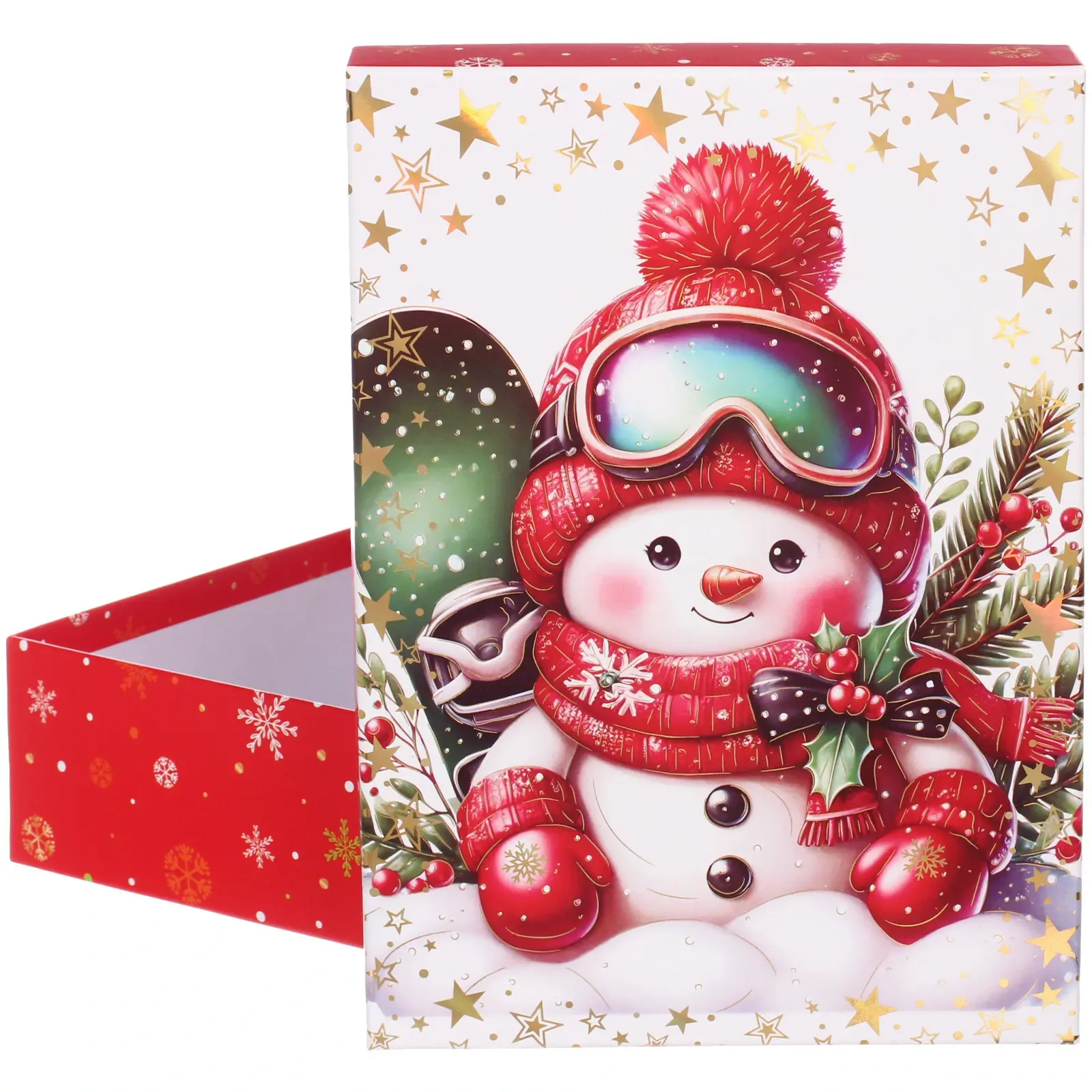 Важно: отгружается одна коробка. Дизайн с новогодним снеговиком, еловыми ветками и ягодами создает неповторимую праздничную атмосферу.