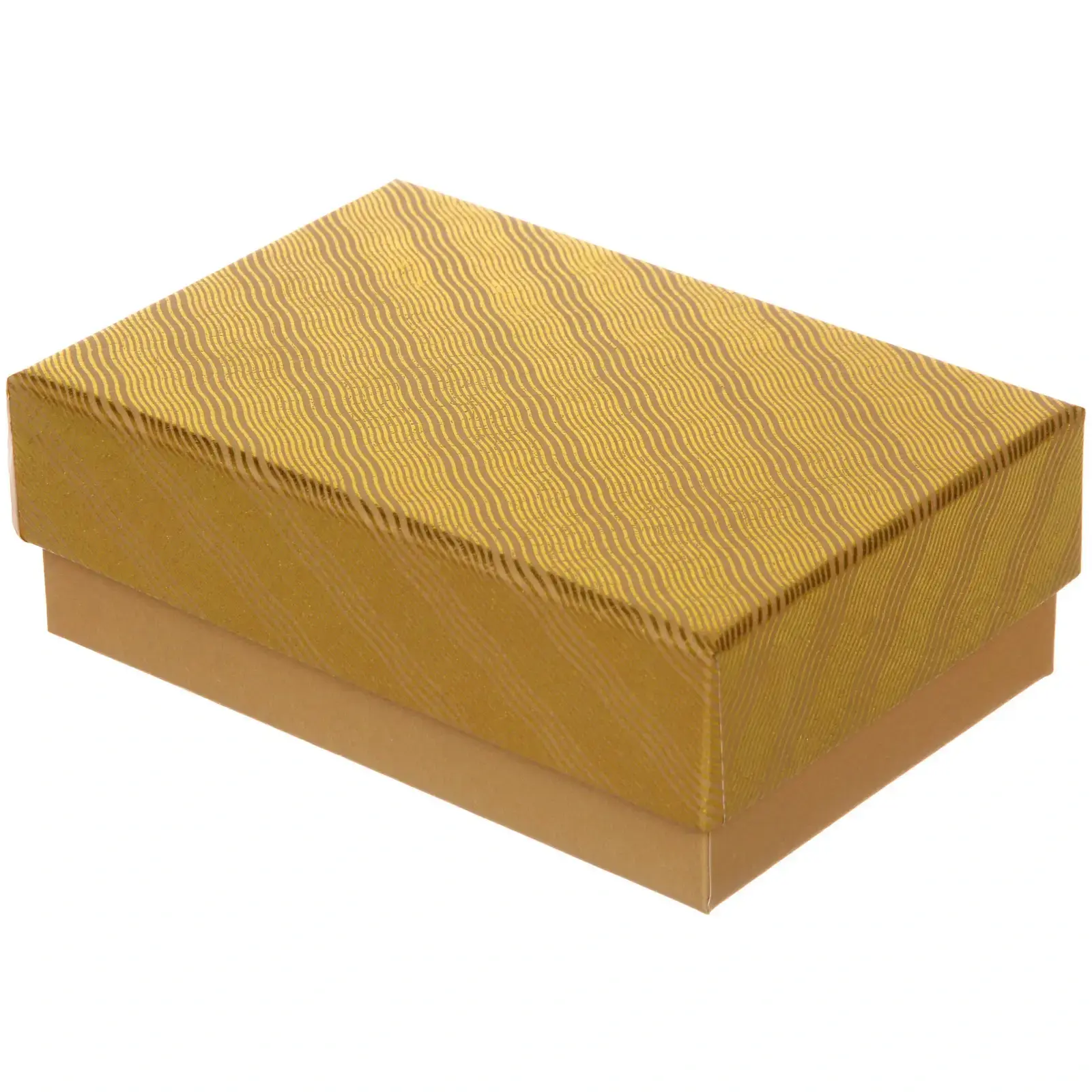 Коробка имеет прямоугольную форму и выполнена в желтом цвете с текстурированным волнистым узором. Она легкая и компактная, что позволяет удобно хранить её до момента использования. Не упустите возможность сделать ваш подарок особенным с помощью этой стильной коробки!