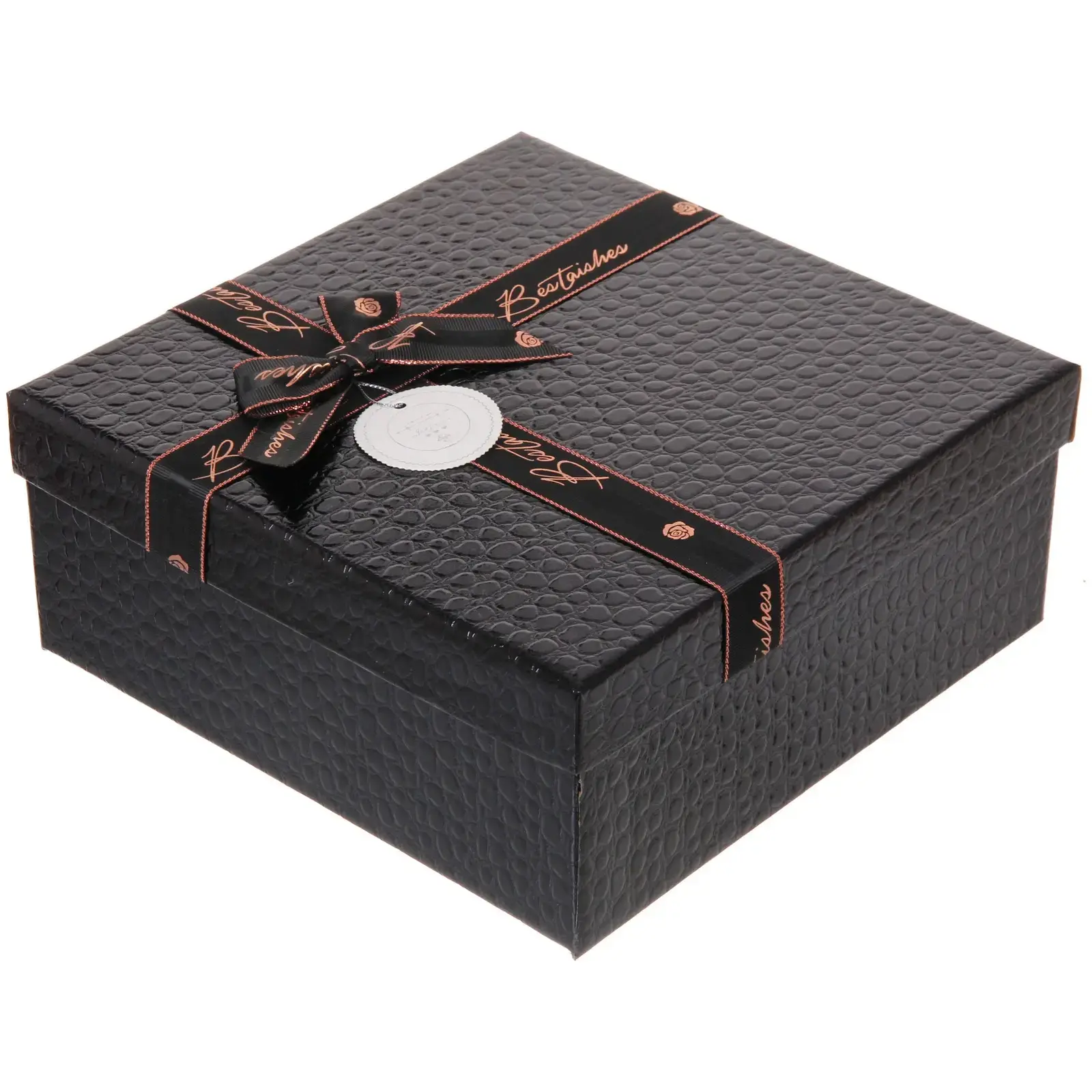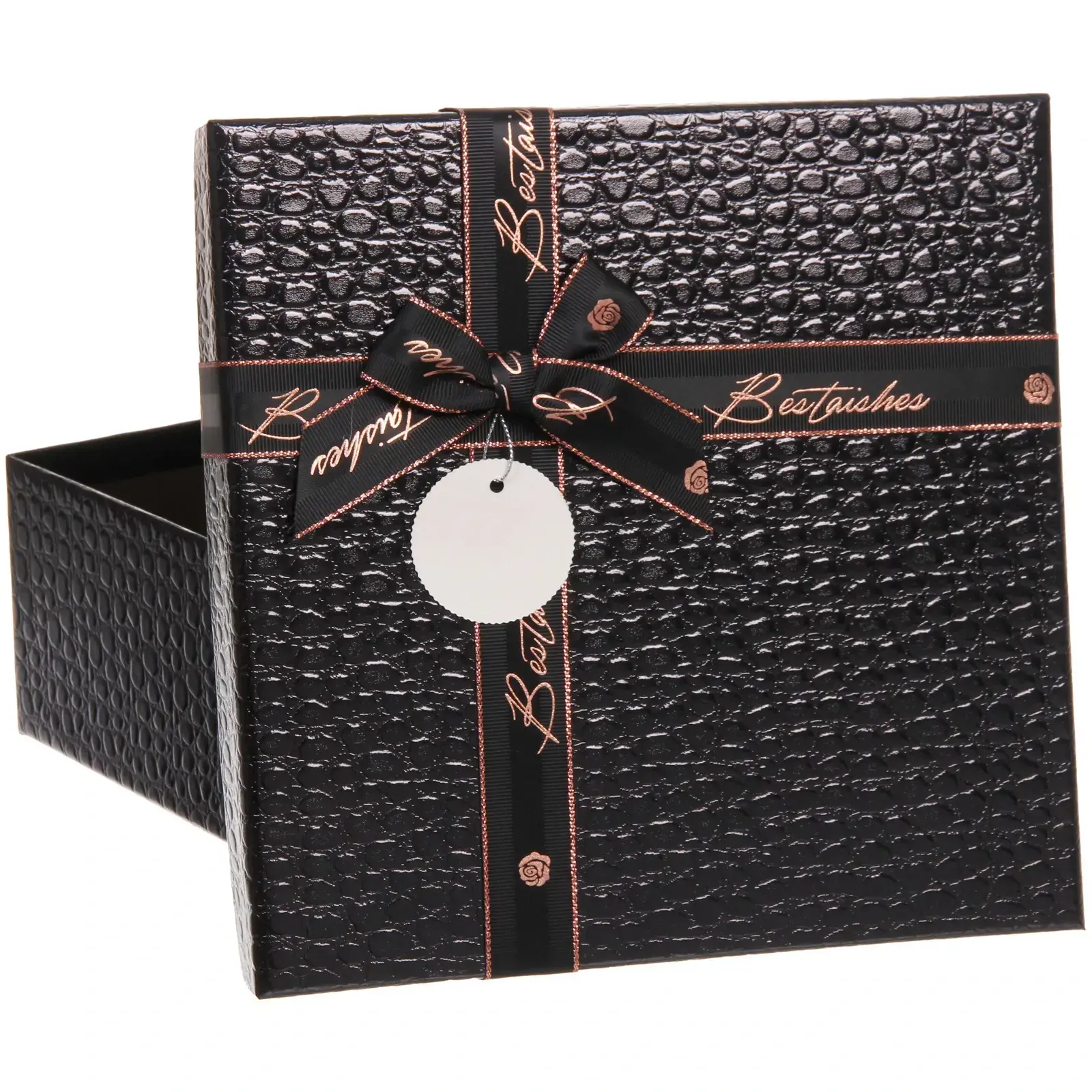 Коробка имеет аккуратные швы и закругленные края, что делает ее безопасной для использования. Черная атласная лента с декоративным узором завершает образ, придавая упаковке завершенность. Вы можете быть уверены, что ваш подарок будет выглядеть великолепно и запомнится надолго.