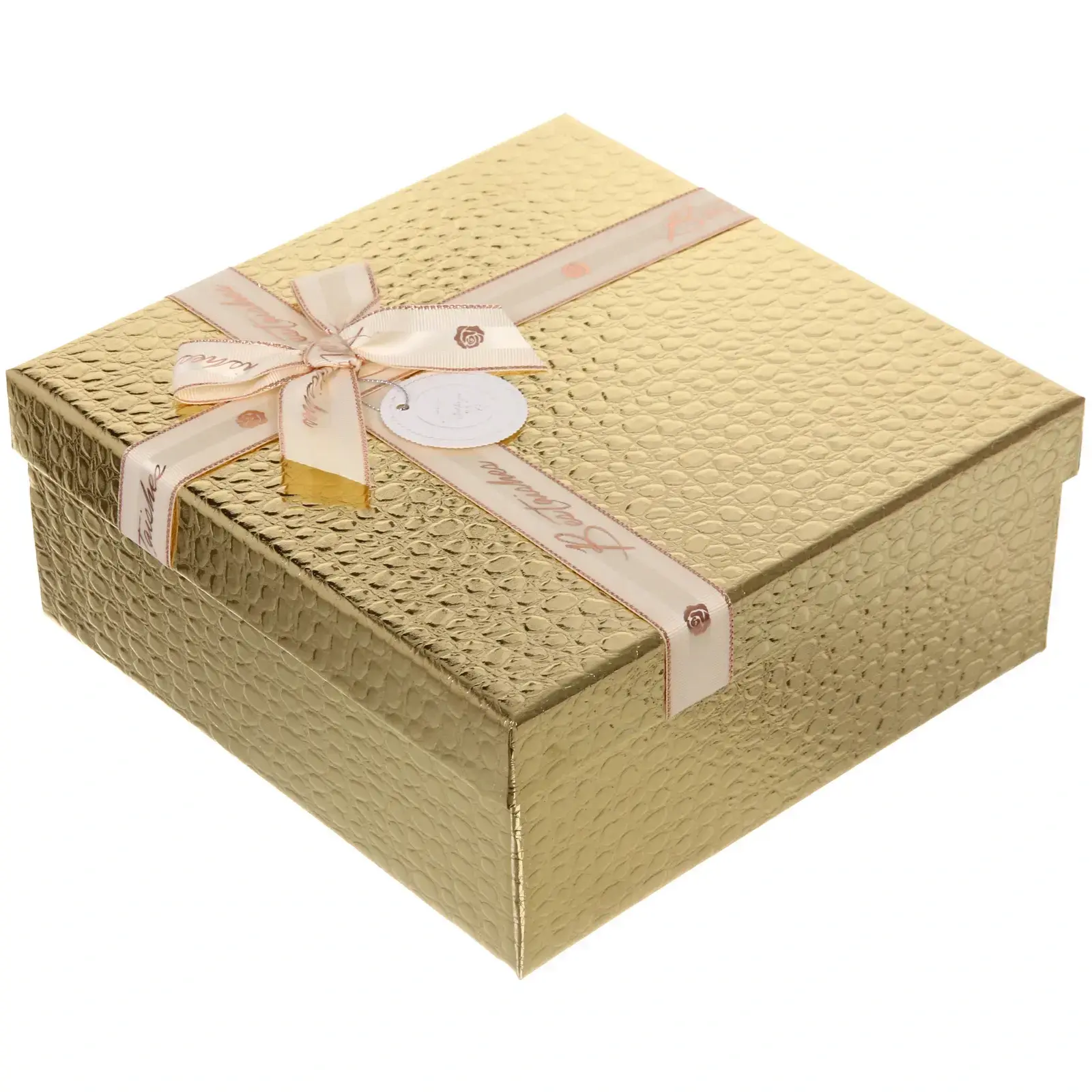 Выбирая коробку «Текстура», вы получаете не только красивую упаковку, но и практичное решение для хранения подарков. Картонный материал обеспечивает прочность и долговечность, а текстурированная поверхность придаёт коробке уникальный вид. Широкая лента бежевого цвета с надписью «Best Wishes» и бантик делают упаковку ещё более привлекательной.
