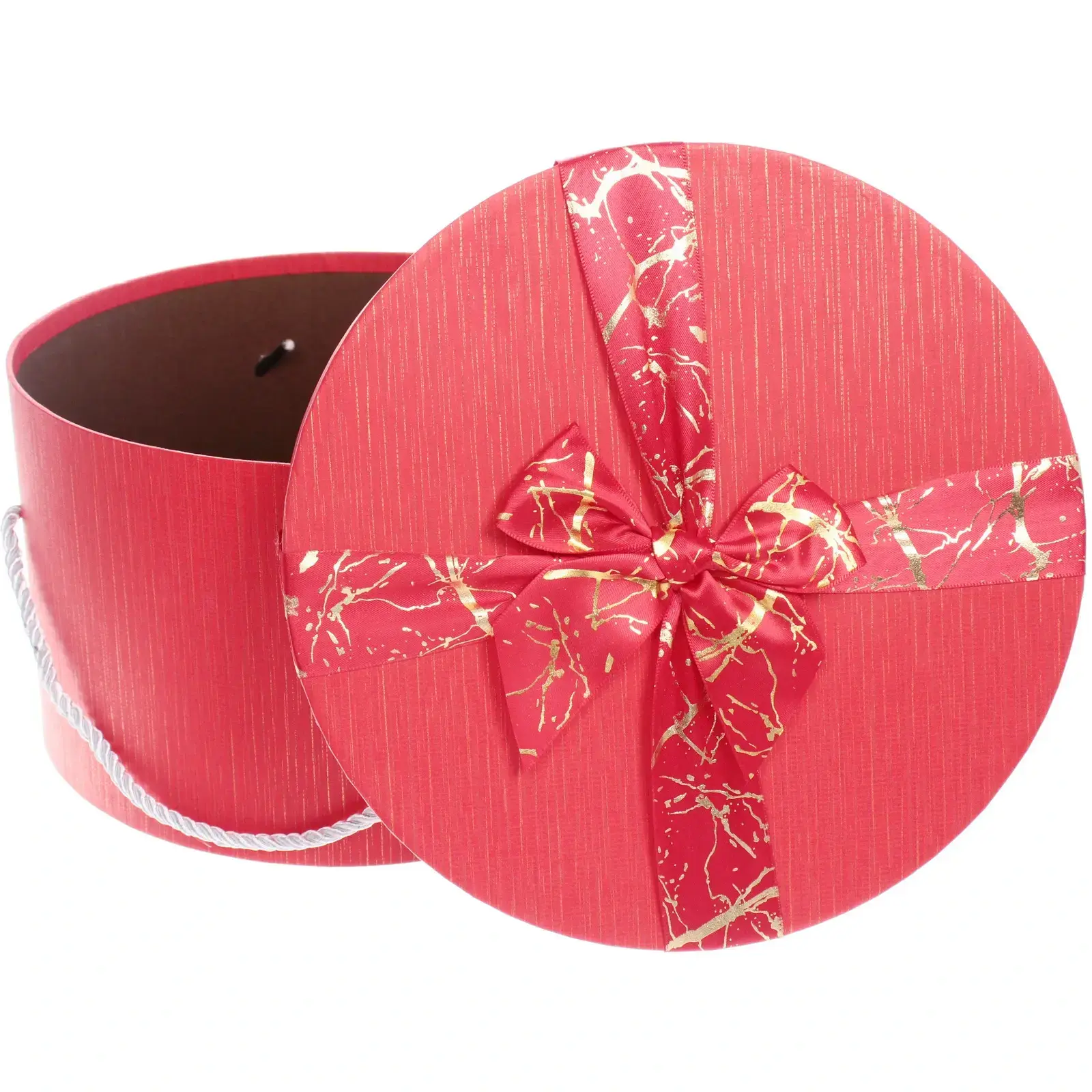 Коробка изготовлена из плотного картона, что обеспечивает её долговечность и устойчивость к повреждениям. Гладкая текстура и яркий красный цвет с золотыми узорами создают праздничное настроение и привлекают внимание. Используйте её для упаковки подарков или как стильный элемент декора в вашем доме.
