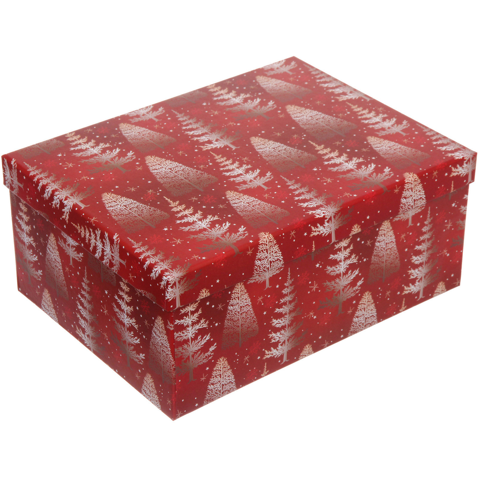 Коробка выполнена из качественного картона, что гарантирует её прочность и долговечность. Размеры 29х22х12,5 см позволяют упаковать как небольшие, так и средние подарки. Праздничный дизайн с изображениями елочек и снежинок делает её идеальной для новогодних праздников. Не упустите возможность сделать ваши подарки еще более запоминающимися с помощью этой стильной коробки!