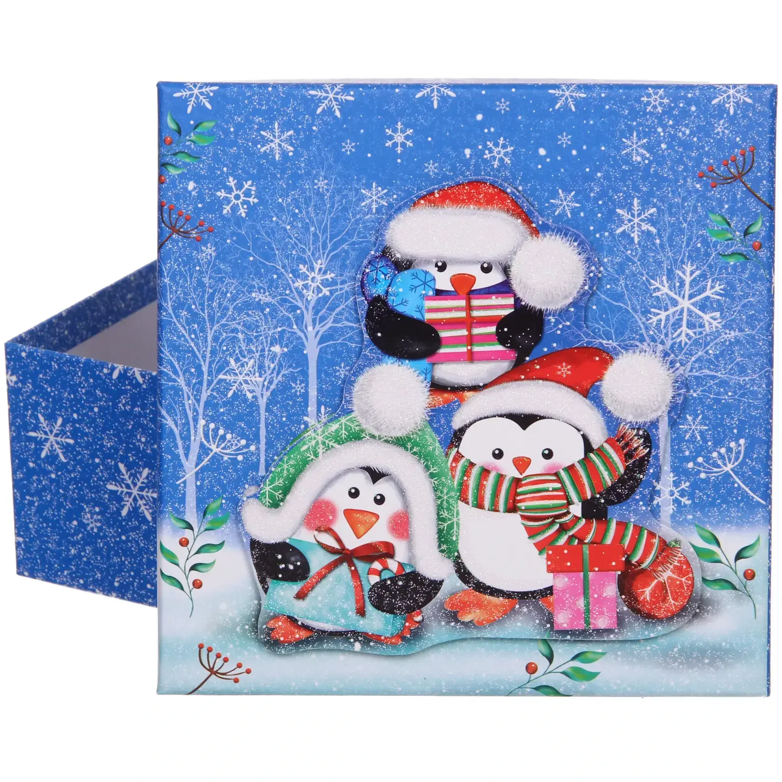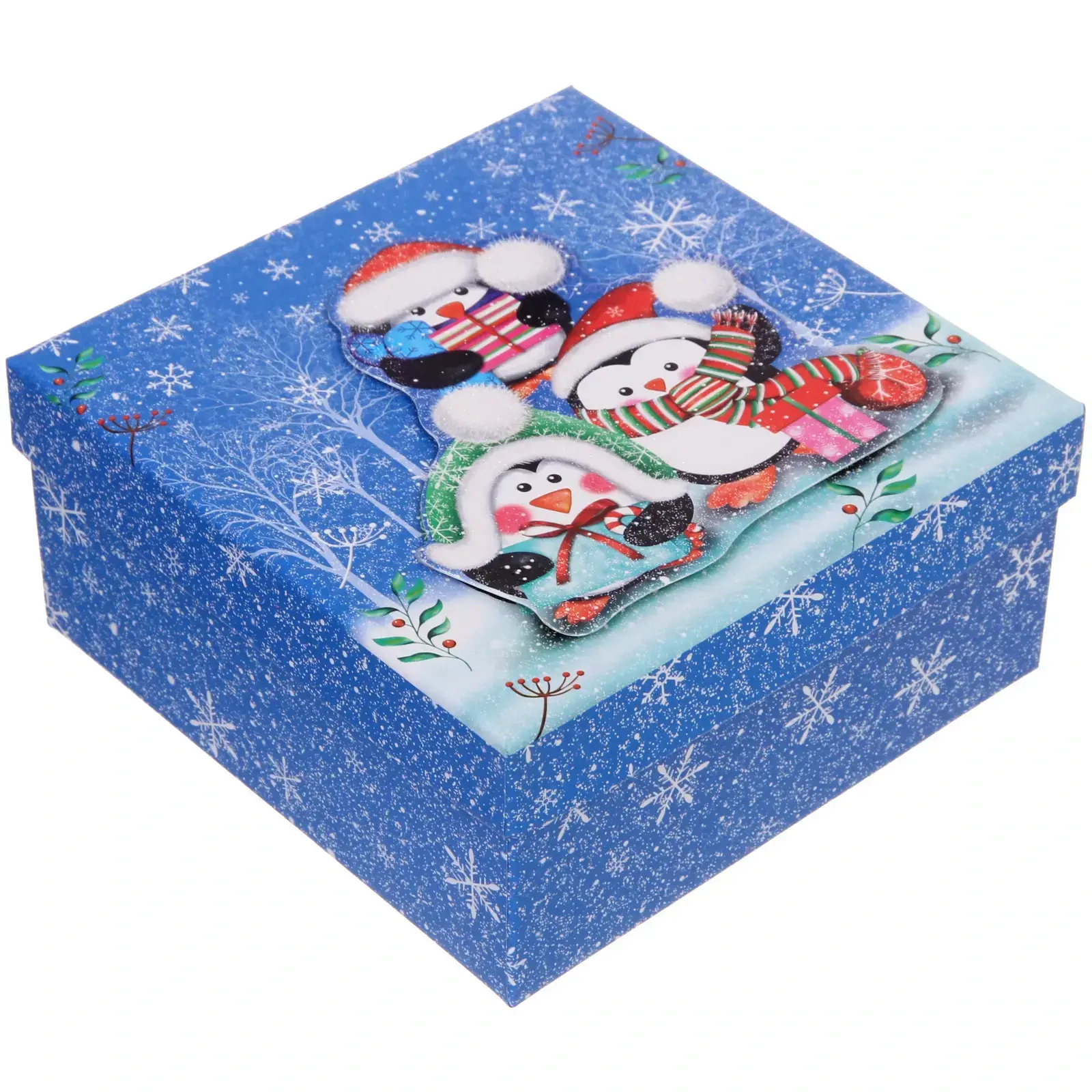 Коробка подарочная 'Веселые пингвинята', 18х18х8.5 см, картон, праздничный дизайн