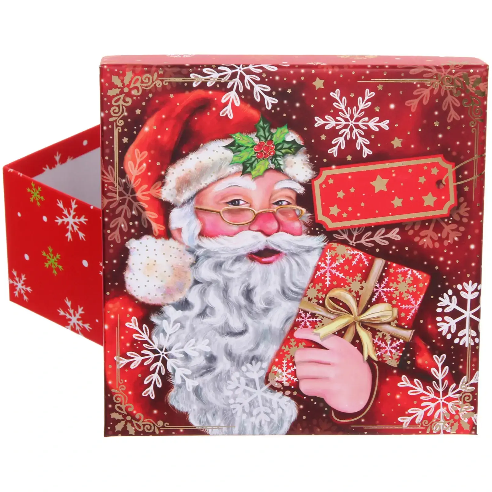 Подарочная коробка 'Веселый Дедушка' станет идеальным началом новогоднего сюрприза. Её яркий дизайн с изображением Санта-Клауса и блестящими элементами моментально создаст атмосферу волшебства.