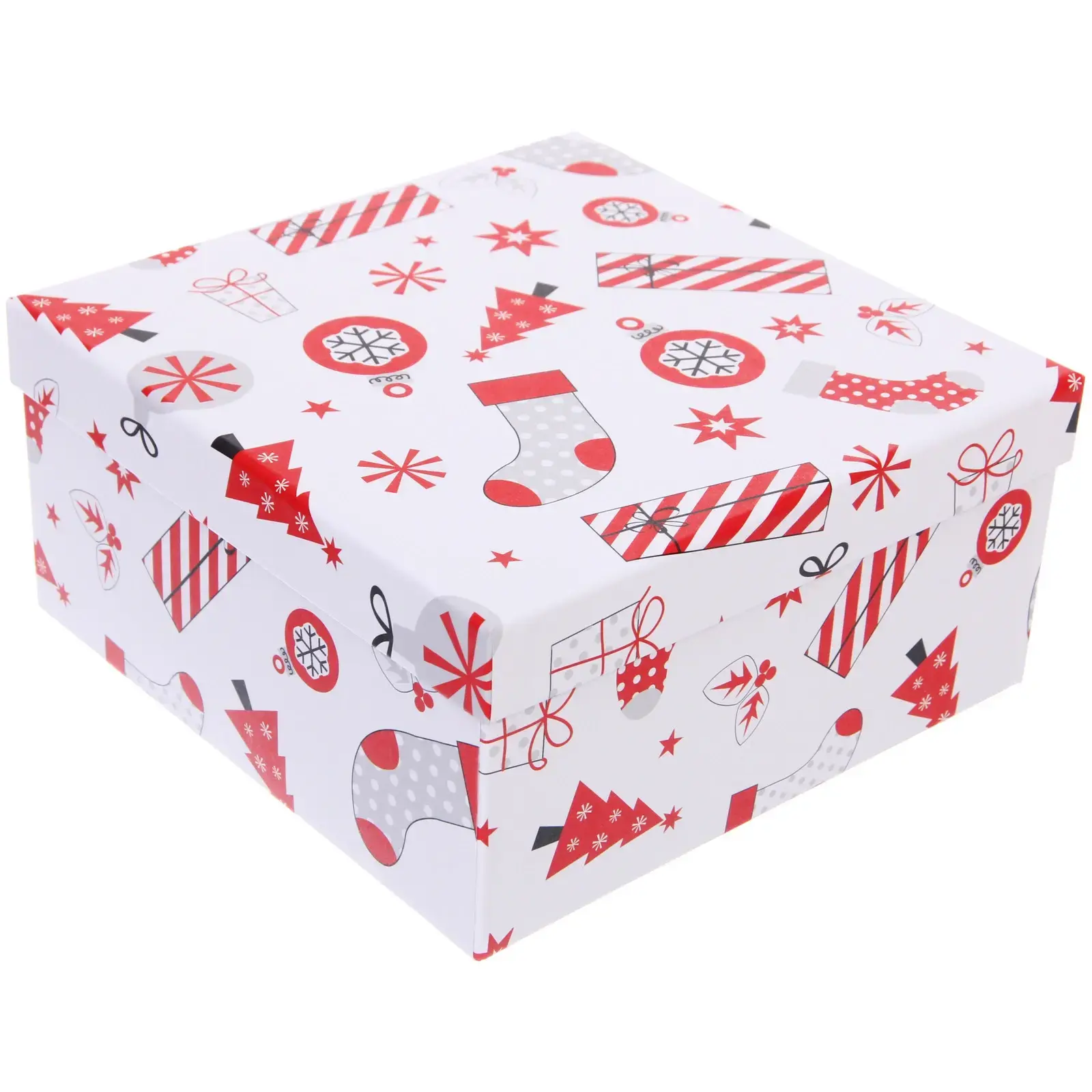 Новогодняя подарочная коробка с авторским дизайном превратит любой сюрприз в запоминающийся презент. Идеальные пропорции 19,5х19,5х9,5 см позволяют разместить большинство стандартных подарков, сохраняя эстетику оформления.