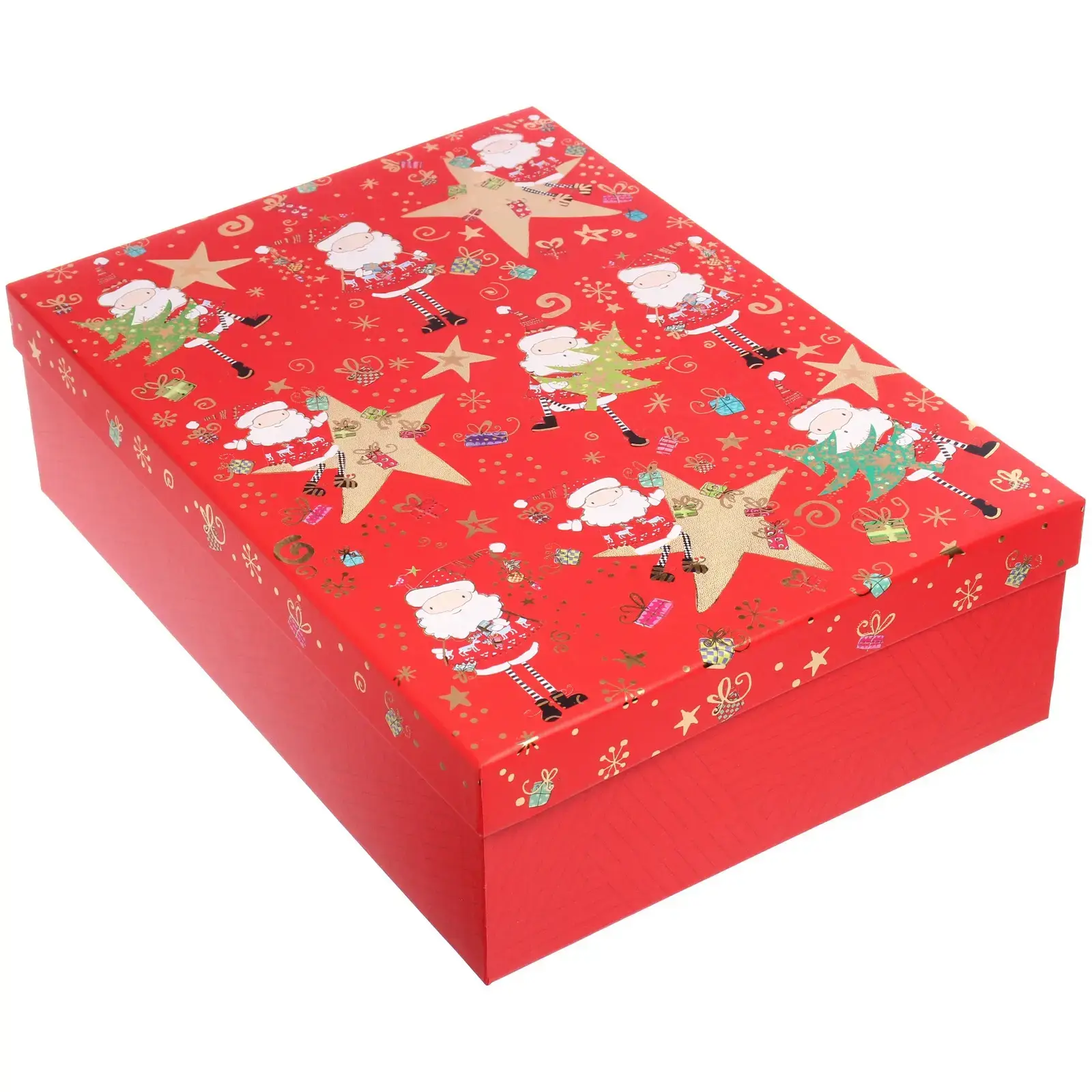 Коробка изготовлена из качественного картона, который обеспечивает надежную защиту содержимого и сохраняет презентабельный внешний вид. Ее размеры (37*27*11 см) позволяют разместить внутри как небольшие сюрпризы, так и более габаритные подарки. Дизайн с новогодними мотивами создает особую праздничную атмосферу.
