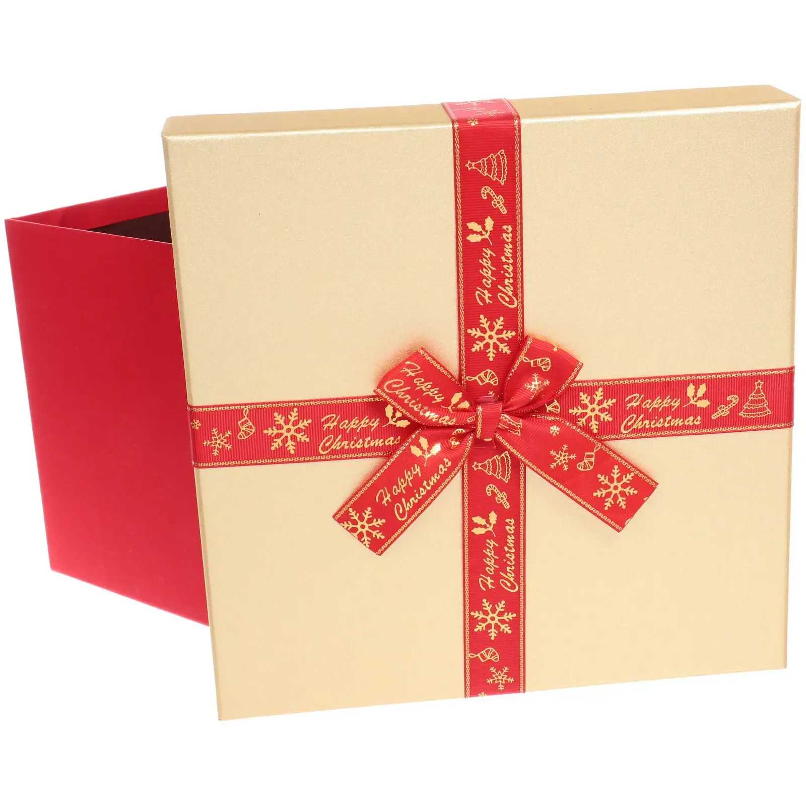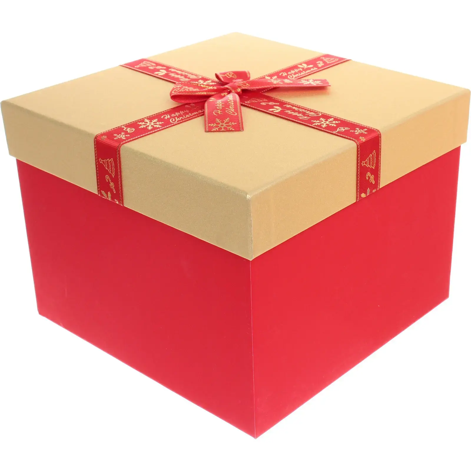 Коробка выполнена из прочного картона, что обеспечивает её долговечность и защиту содержимого. Яркая красная лента с золотыми узорами добавляет праздничного настроения и делает упаковку ещё более привлекательной. Благодаря стильному дизайну, коробка станет не только упаковкой, но и частью подарка, которую приятно будет оставить на память.