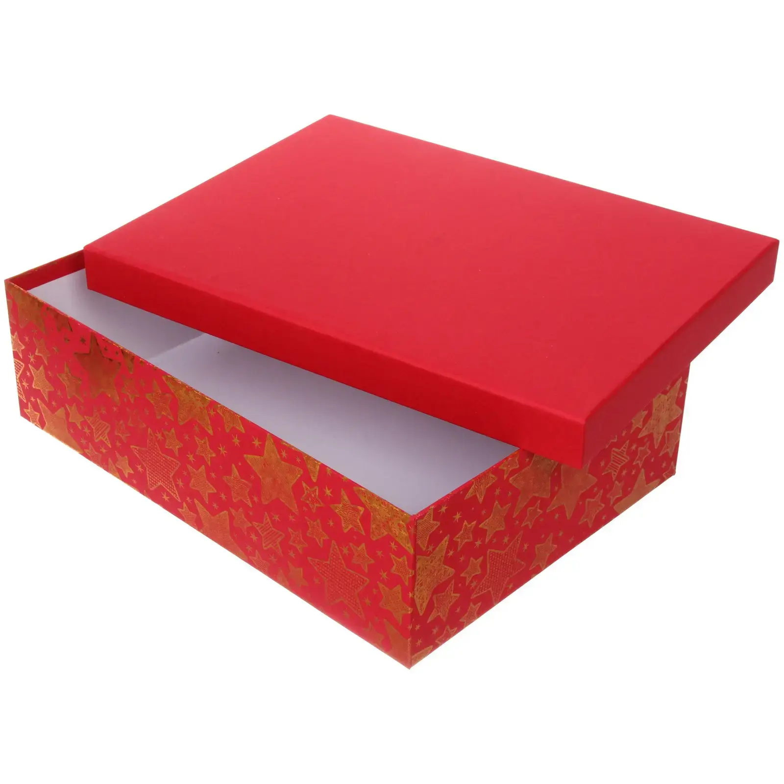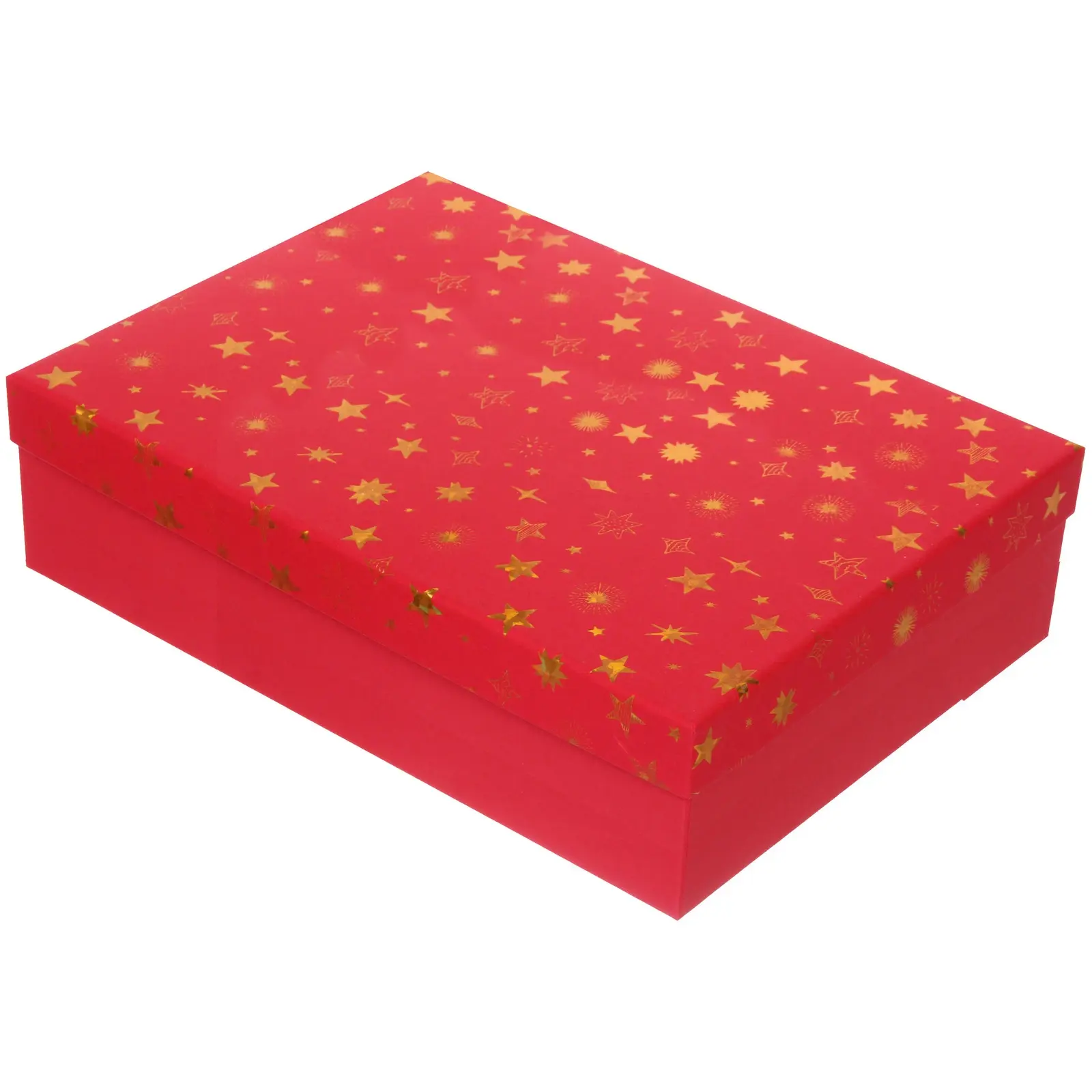 Материал – качественный картон, цвет – насыщенный красный, покрытие – золотой лак для долговечного блеска. Коробка поставляется в одной единице, цвет определяется случайным образом из ассортимента.