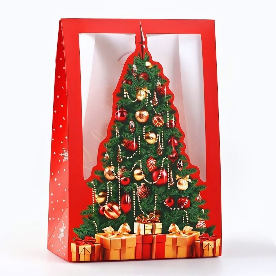 Подарите своим близким незабываемые эмоции с нашей складной коробкой "Роскошный праздник". Яркий дизайн с новогодней елкой, украшенной золотыми и красными шарами, создаст атмосферу праздника и волшебства. Идеально подходит для упаковки конфет, небольших сувениров и других приятных мелочей.