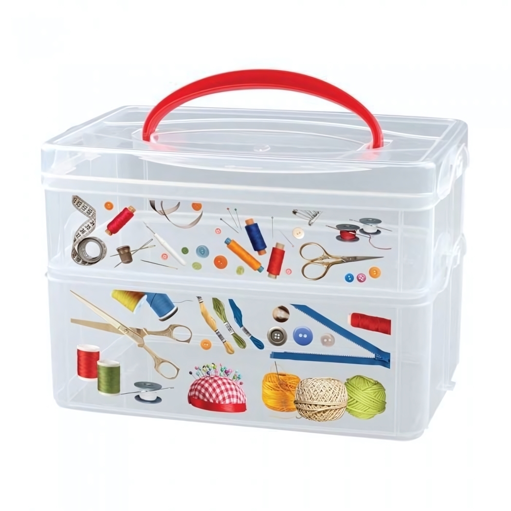 Коробка для шитья 'Multi Box' 2 секции, 245х160х165мм, прозрачный пластик с красной ручкой