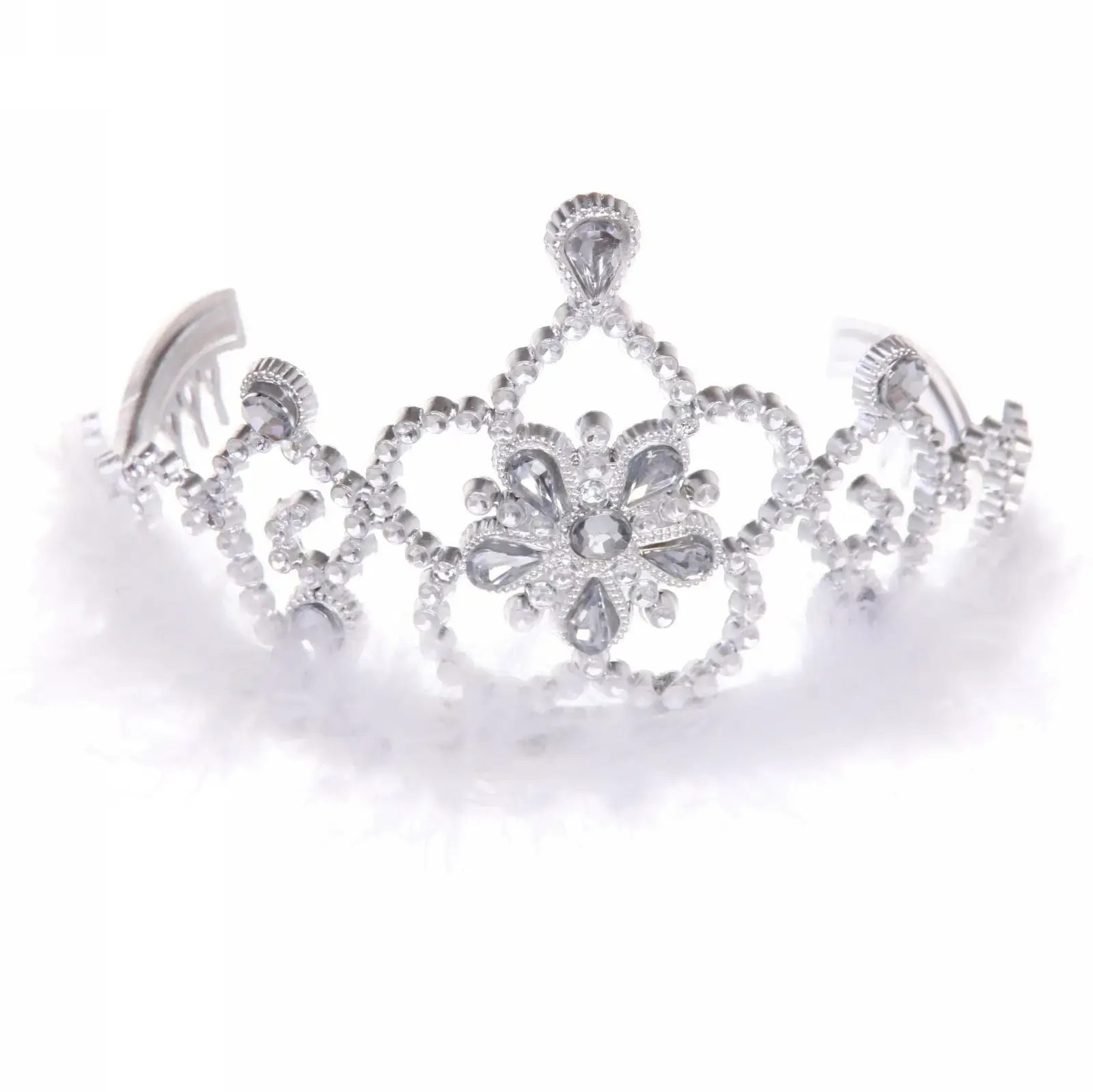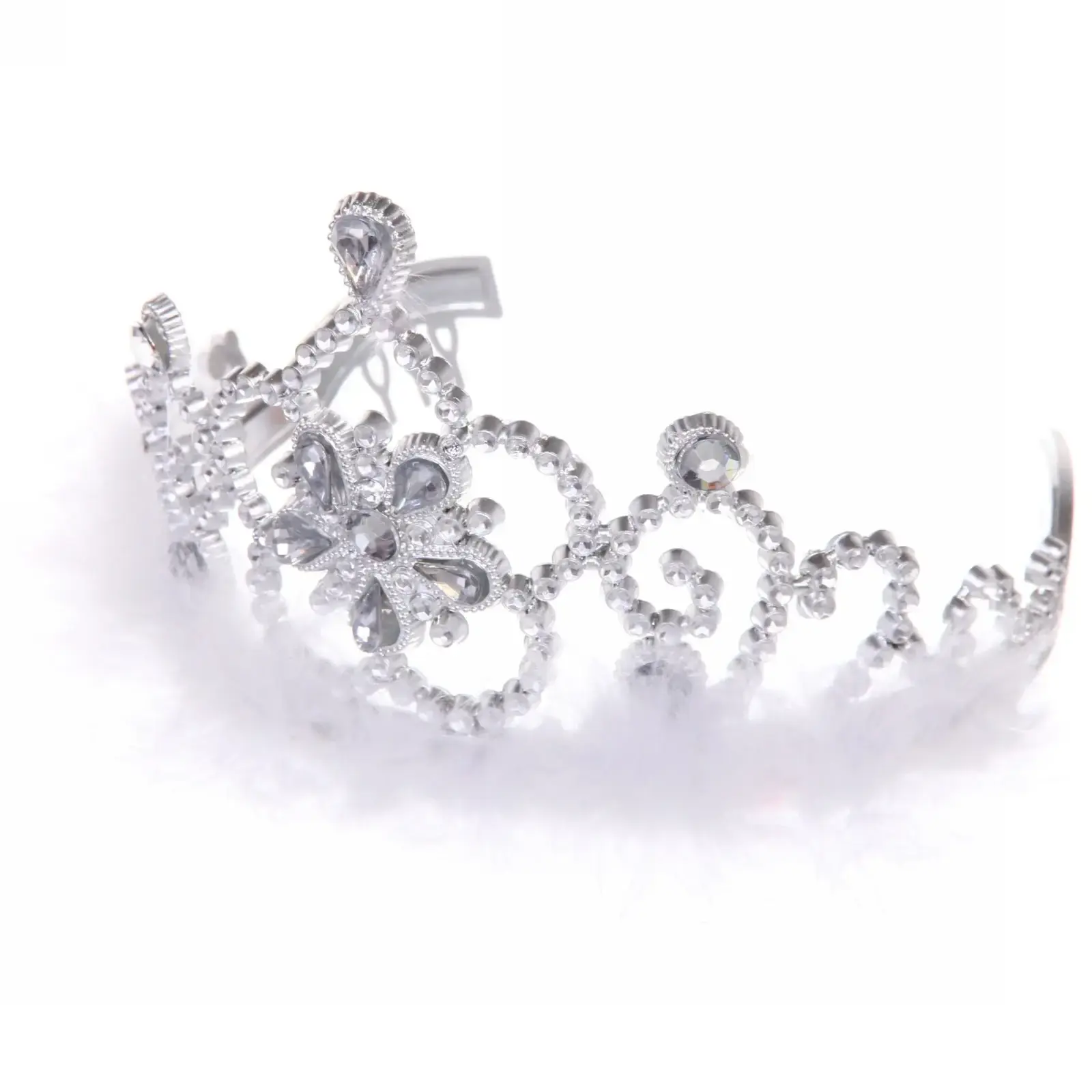 Корона праздничная «Бриллиантовая фея» с стразами и перьями, серебристая, гибкая регулировка размера