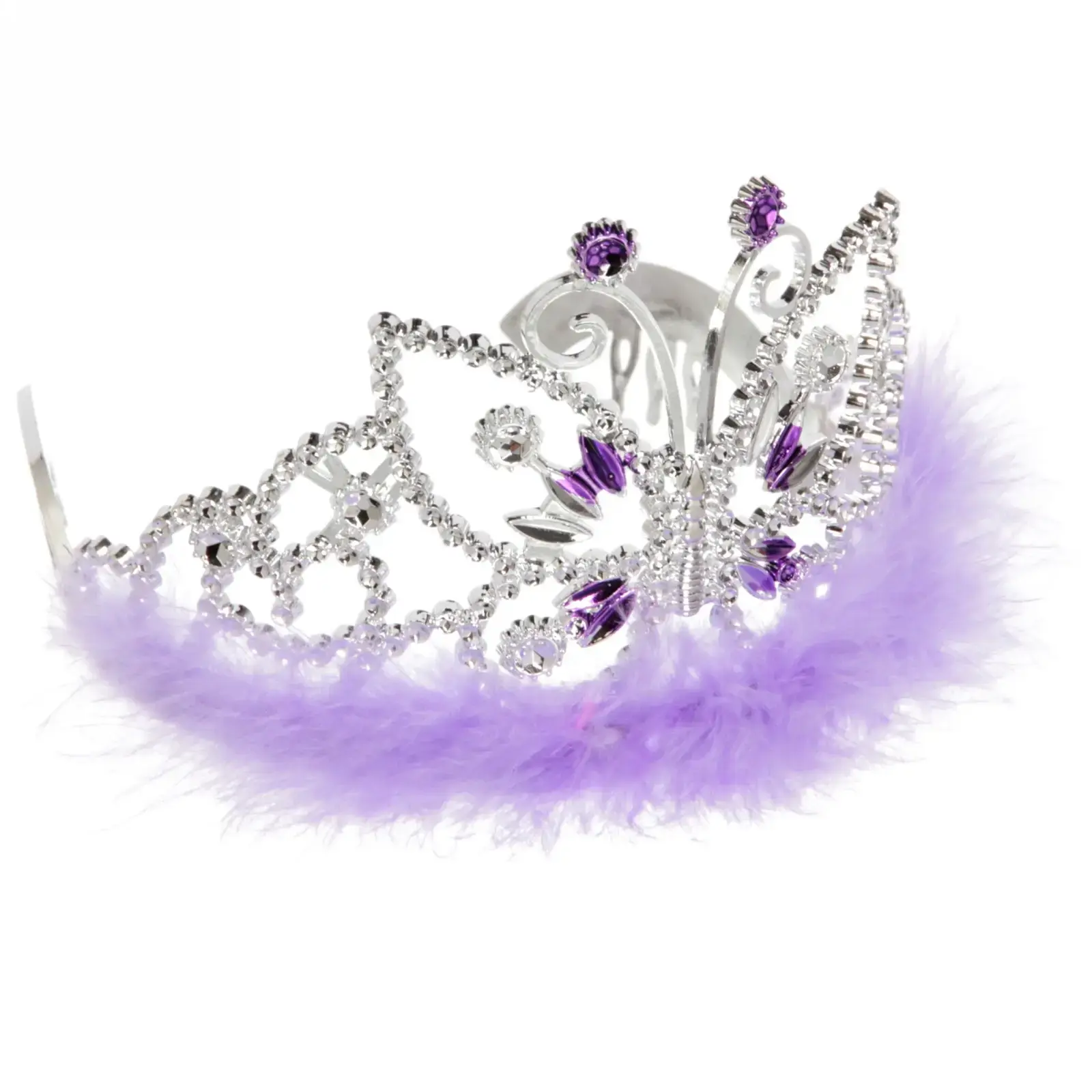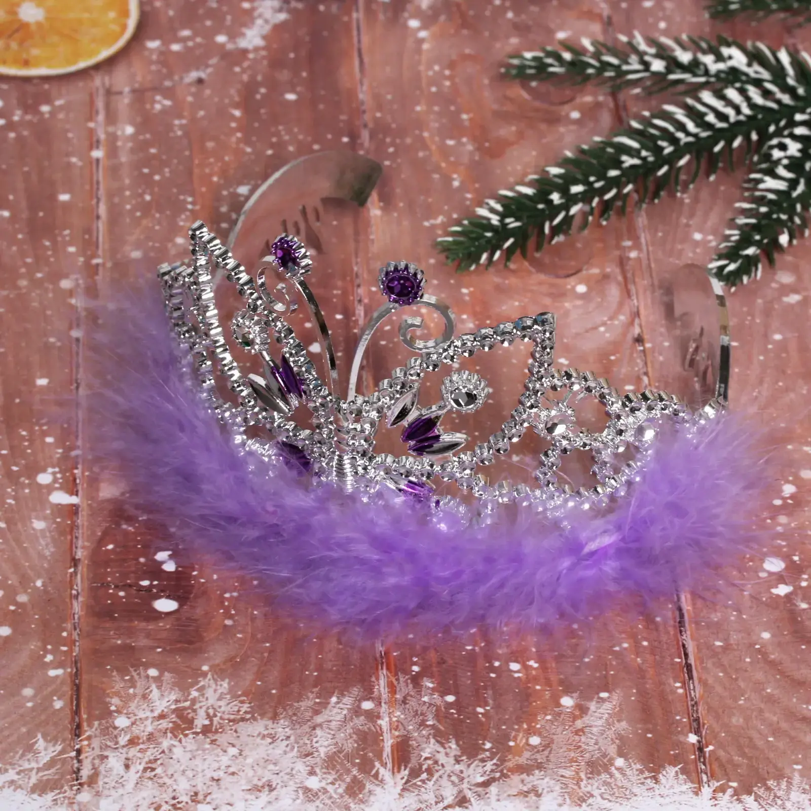 Корона «Фея Бабочка» серебристая с фиолетовыми стразами и пуховой отделкой, пластик