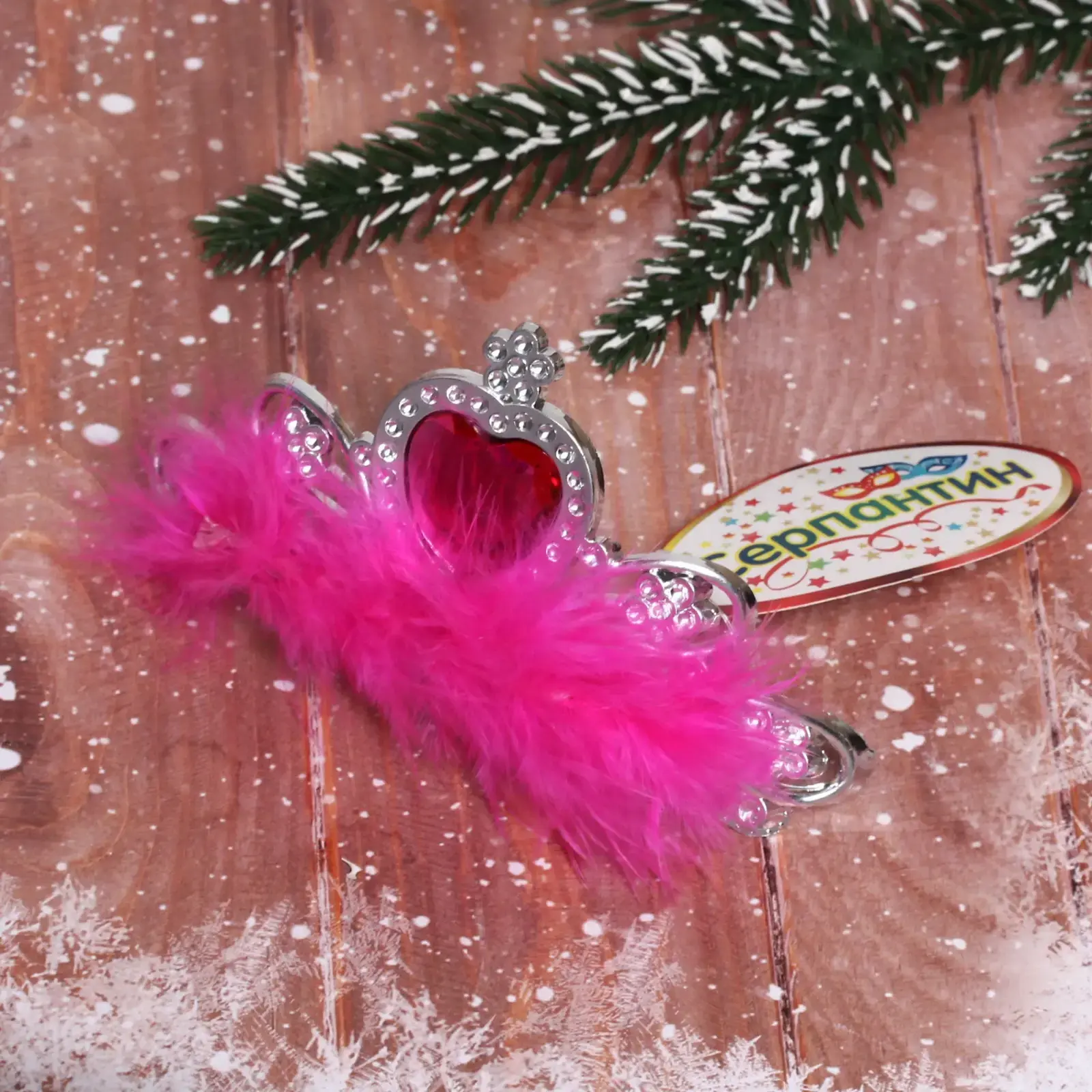 Серебристая основа гармонично сочетается с розовыми декоративными элементами, создавая праздничный контраст. Размеры короны оптимальны для детей дошкольного и младшего школьного возраста. Перед первым использованием протрите изделие сухой мягкой тканью.