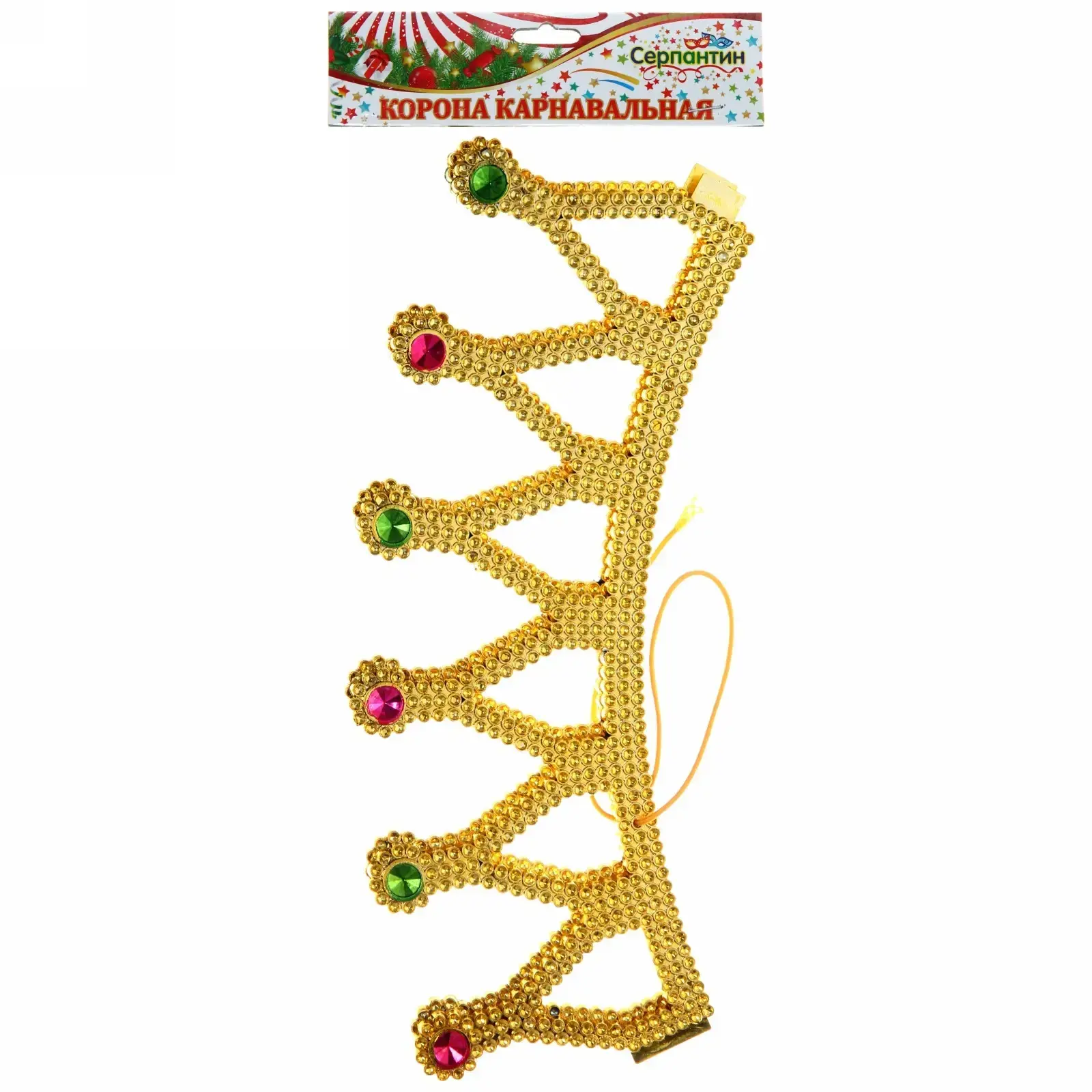 Корона имеет золотистый цвет и украшена камнями зеленого, красного и розового оттенков. Она легкая и удобная в носке, что позволяет вам наслаждаться праздником без лишних забот. Размер короны не указан, но она подходит для большинства голов. Не упустите возможность стать настоящей королевой на вашем празднике с короной «Королева»!