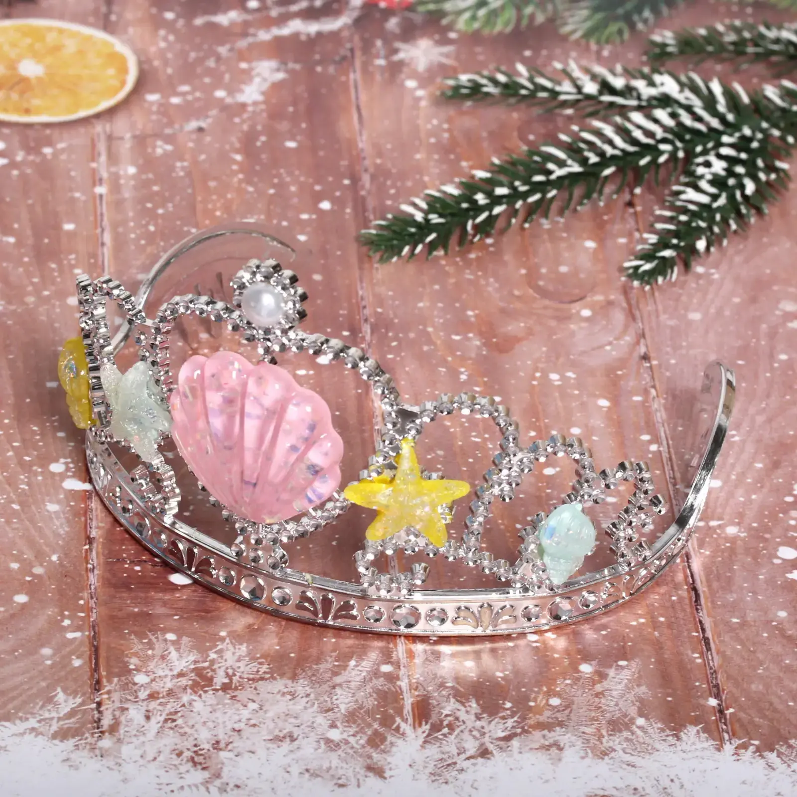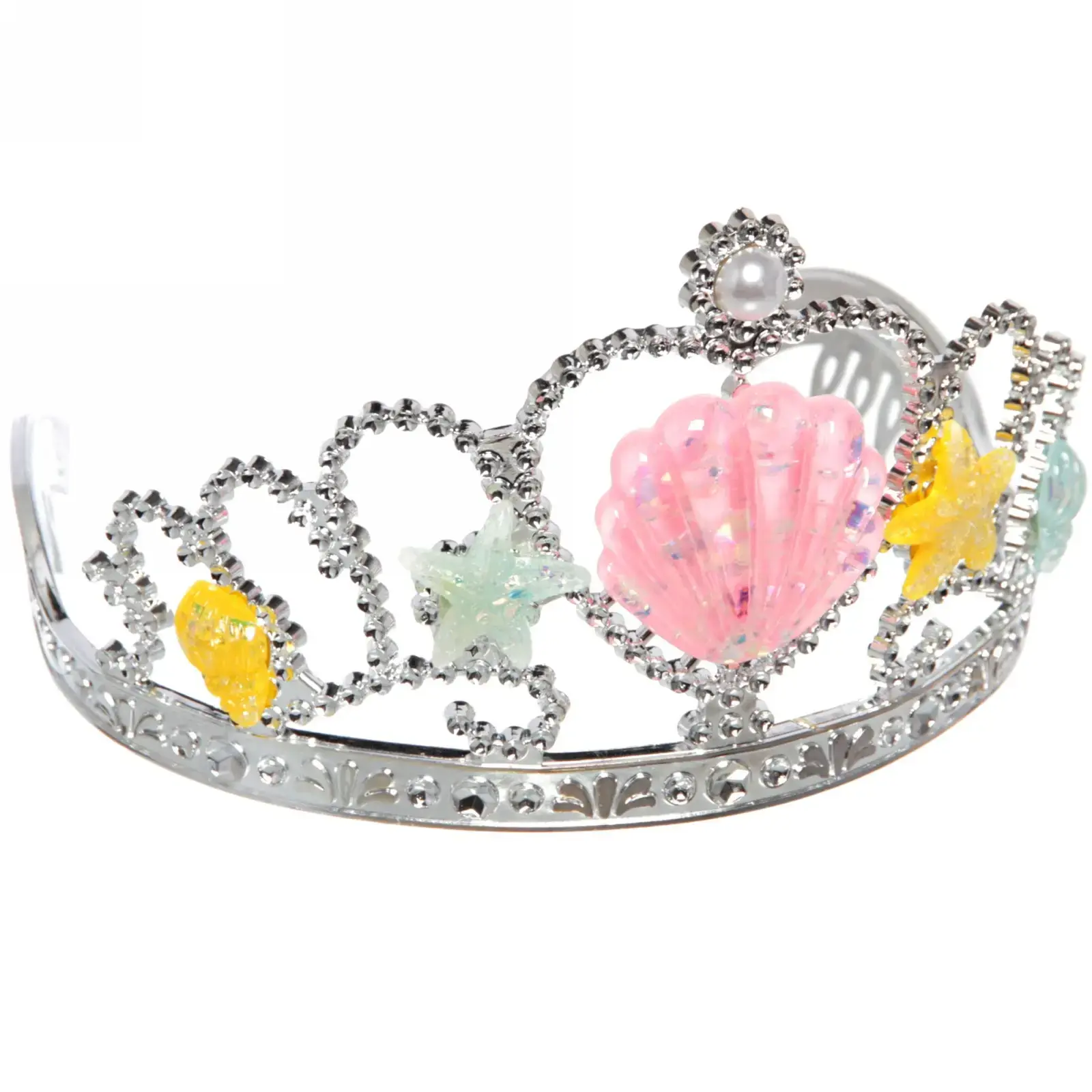 Корона детская «Морская принцесса», пластик, серебристый с ракушками, звездами и жемчужиной