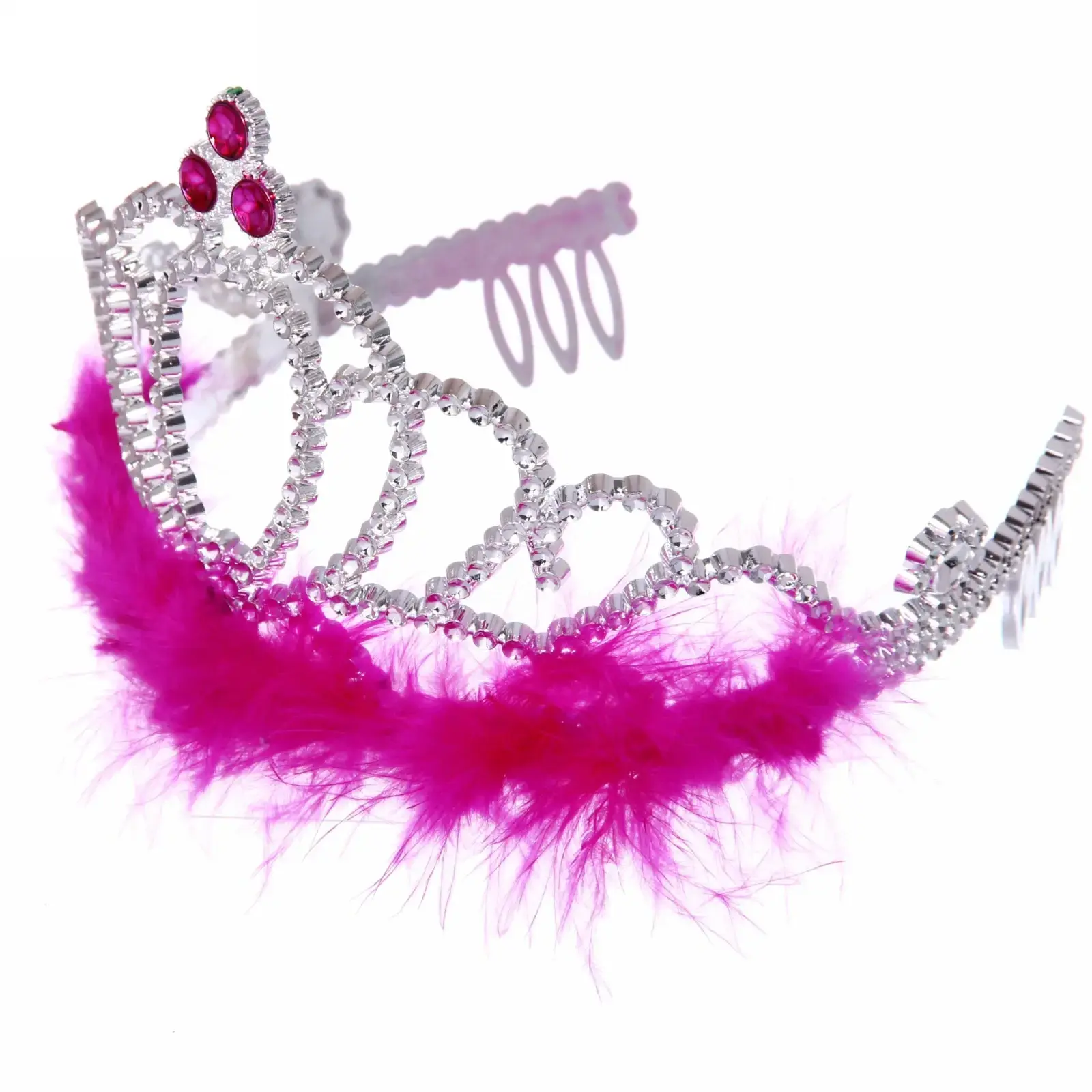 Корона имеет серебристый цвет с яркими розовыми стразами и фиолетовым пухом, что делает её идеальным аксессуаром для создания праздничного настроения. Размеры короны не указаны, но она компактна и подходит для большинства голов. Не упустите возможность стать центром внимания на любом празднике с короной «Принцесса Нежность»!