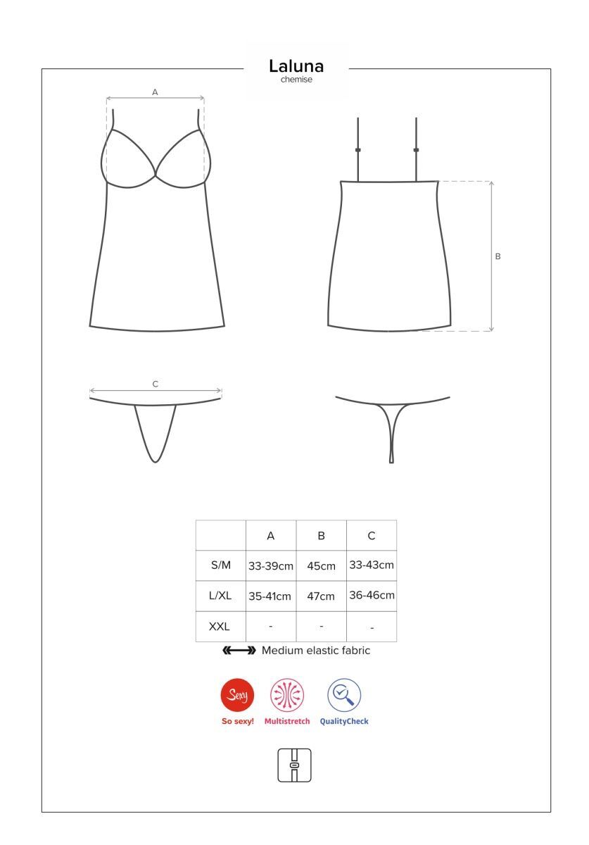 Выбирая сорочку Laluna, вы получаете не только красивое изделие, но и высокое качество. Материал, состоящий на 90% из полиамида и 10% из эластана, обеспечивает долговечность и комфорт при носке. Черный цвет добавляет загадочности и сексуальности, а кружевные детали делают образ более романтичным.