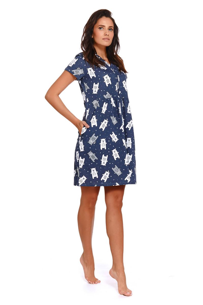Сорочка представлена в размере L. Цвет — насыщенный синий с контрастным светлым принтом. Изделие отшито в Польше под брендом Doctor Nap, что гарантирует внимание к деталям и качество пошива.