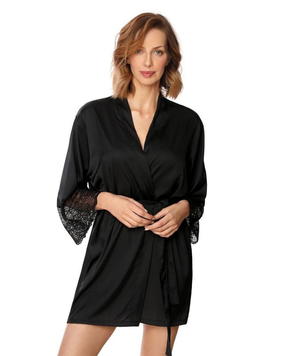 Халат Zora с длинными рукавами и тонким поясом на талии идеально подходит для создания романтической атмосферы. Он подходит для использования как дома, так и в качестве стильного дополнения к вашему нижнему белью. Легкие кружевные вставки на рукавах добавляют изысканности и делают этот халат по-настоящему уникальным.