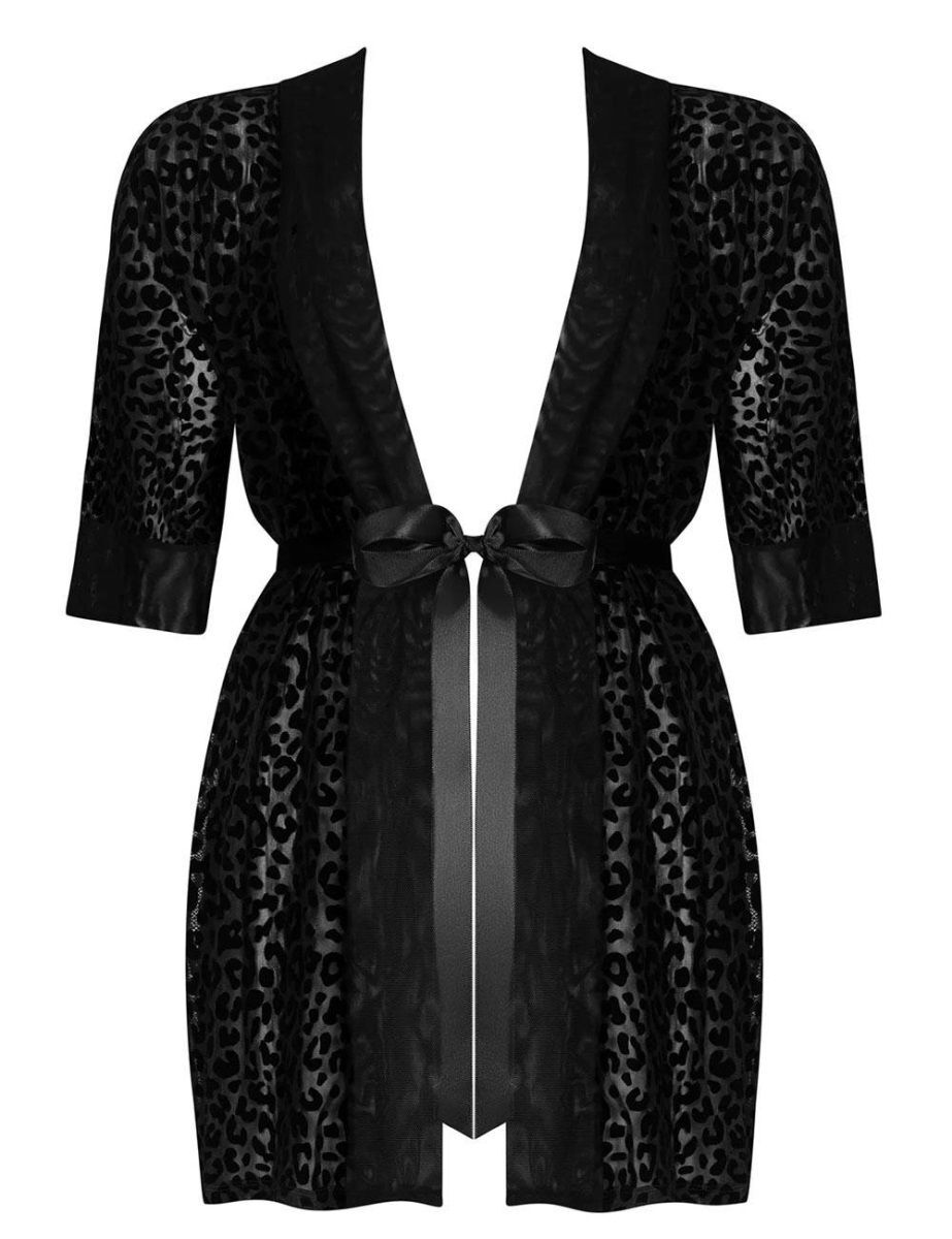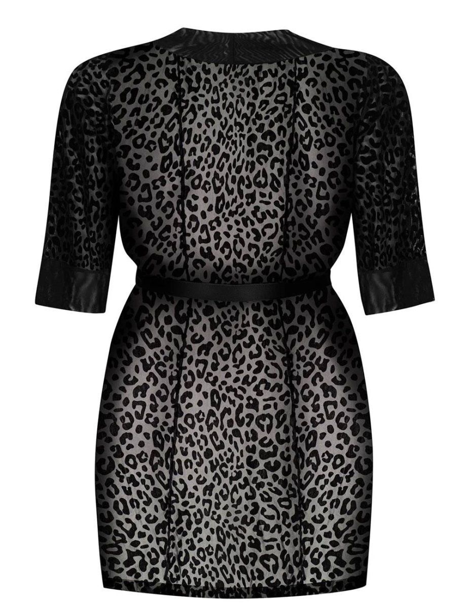Пеньюар «Jagueria» с леопардовым принтом, черный, размер 4X-5X, полиамид/эластан
