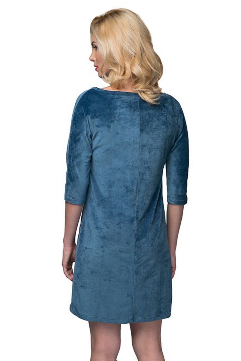 Платье домашнее прямое с пайетками на карманах, голубое, размер S, 95% полиэстер, 5% эластан