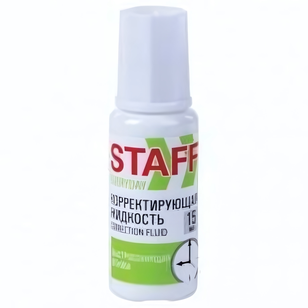 Корректирующая жидкость STAFF 15мл, быстросохнущая, с кисточкой