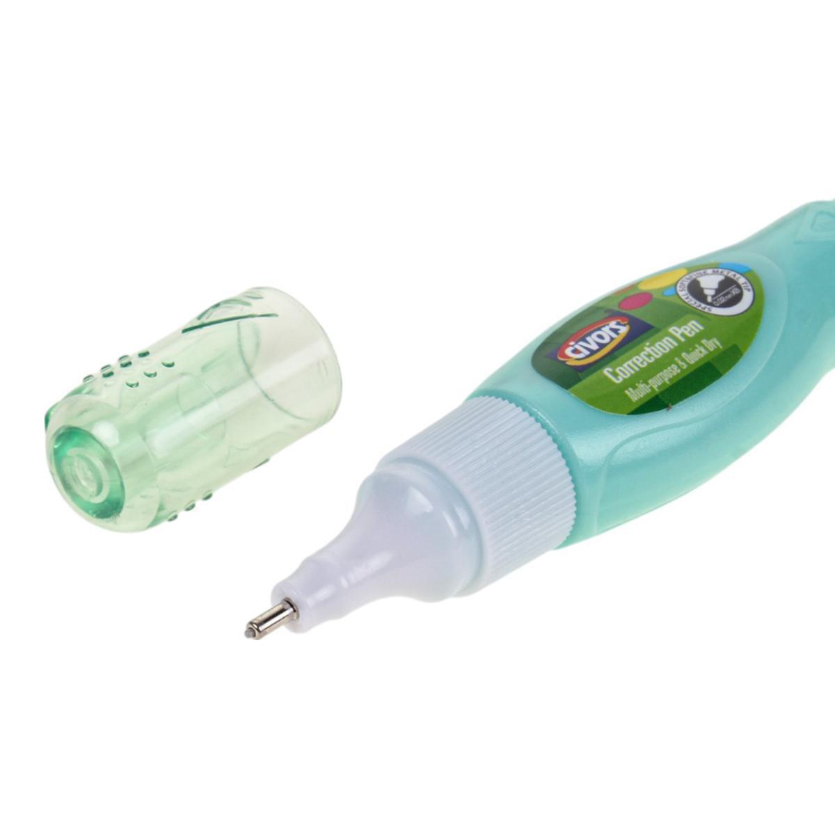Объём корректирующего состава 5 мл рассчитан на продолжительное использование. Быстросохнущая формула не размазывается после нанесения, а эластичный состав не трескается со временем. Подходит для исправления чернильных помарок в документах, школьных тетрадях и творческих проектах.