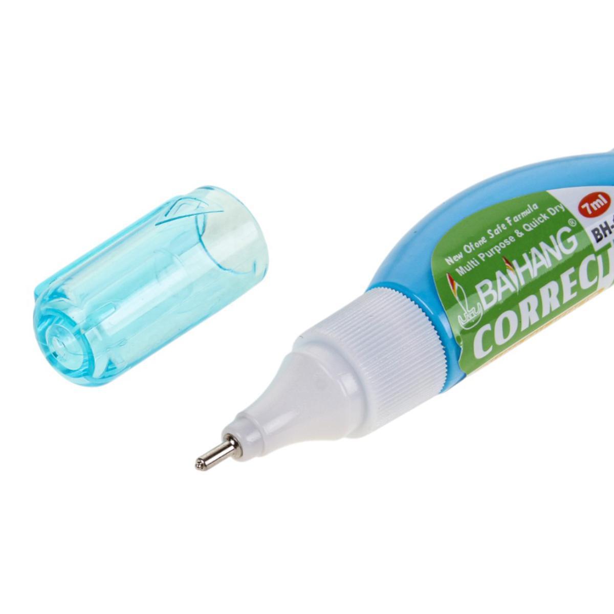 Каждый карандаш имеет объем 7 мл корректирующей жидкости. Цветной корпус представлен в четырех вариантах: оранжевый, синий, розовый и салатовый. Прочный пластик защищает содержимое от протечек и повреждений. Металлический наконечник гарантирует долговечность использования.