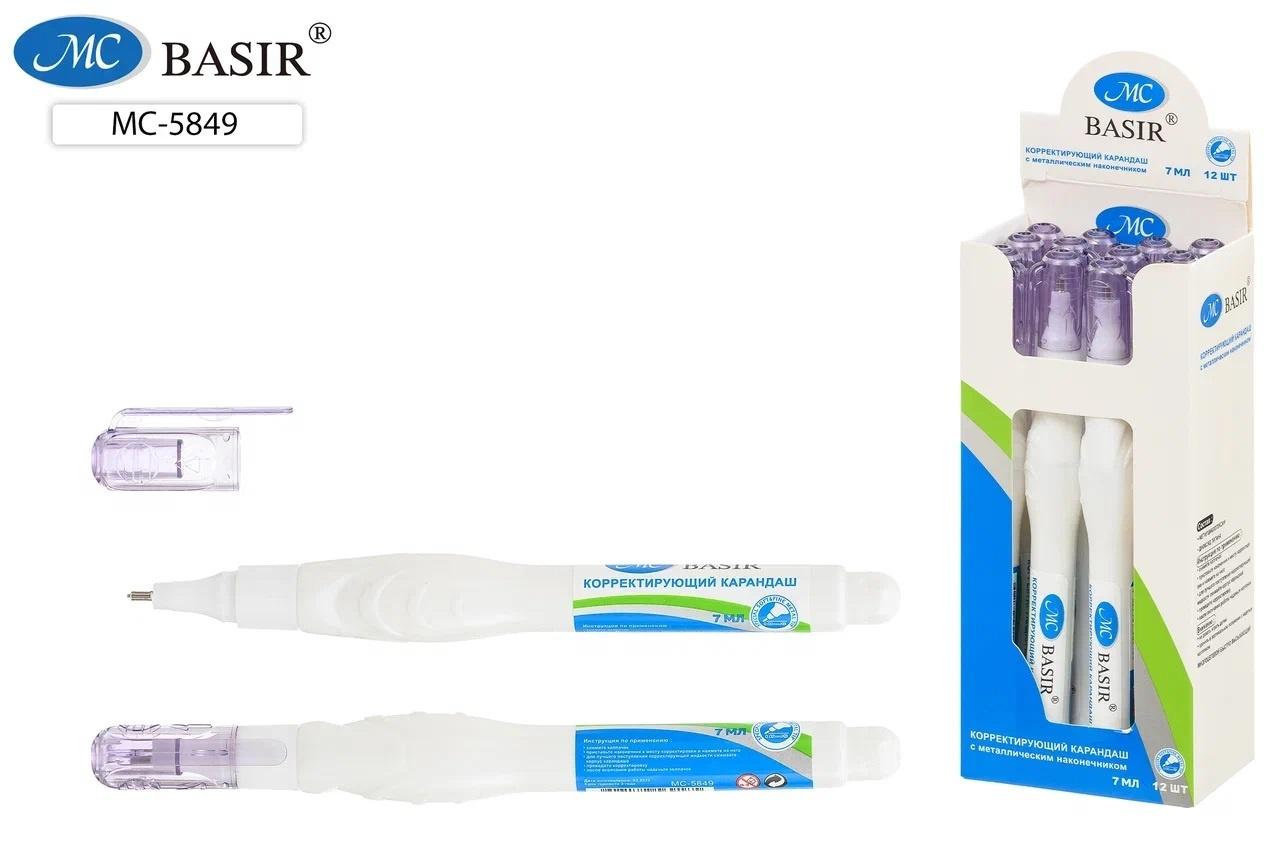 Корректор-карандаш 7мл. фигурный, белый корпус, металлический наконечник (Basir)