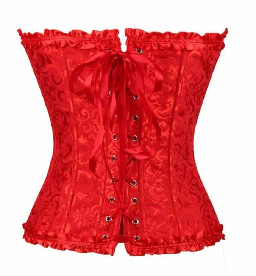 Корсет красный 3XL, жаккард с цветочным рисунком, регулируемая шнуровка