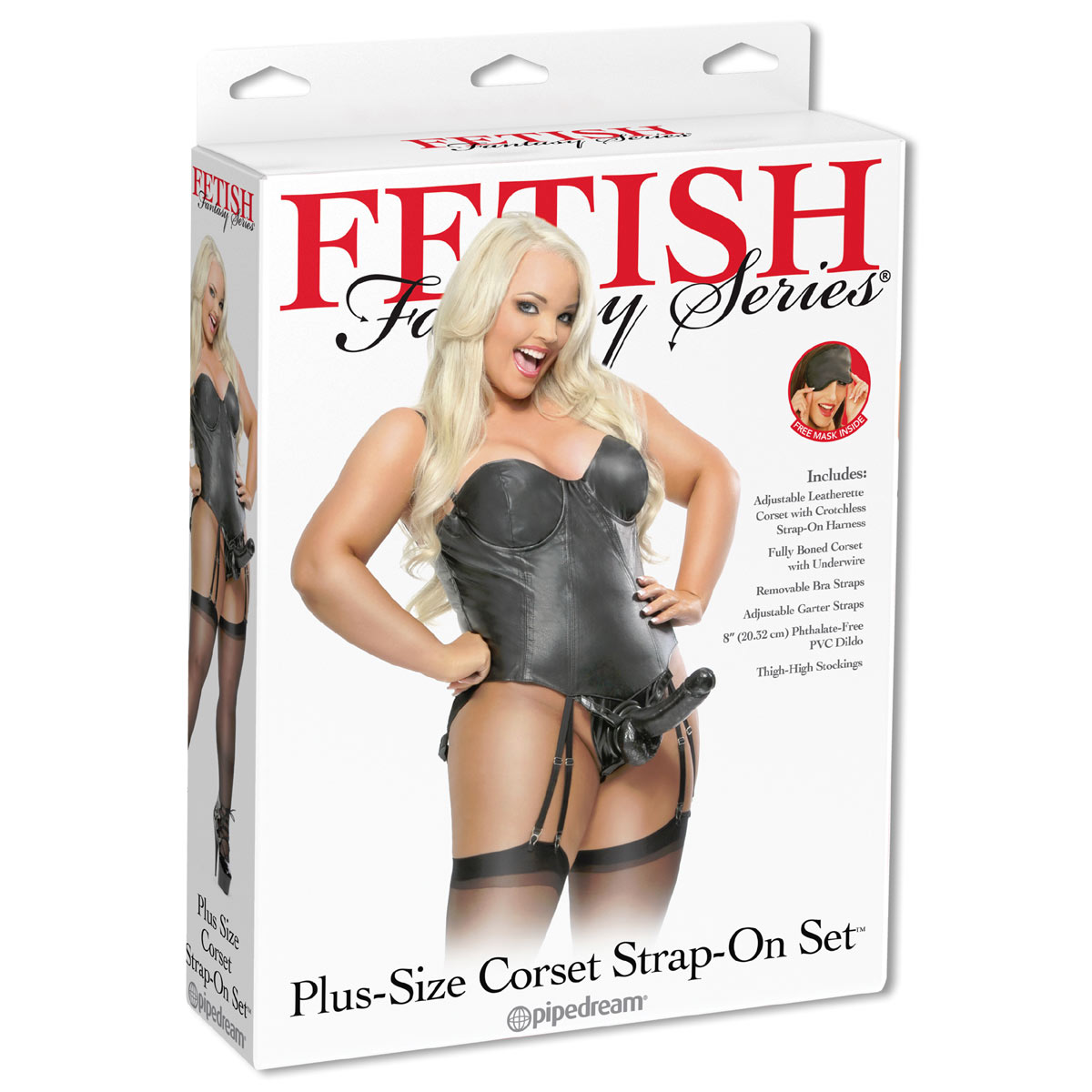 - Полный готовый комплект для игры: Вам не нужно ничего докупать. В набор входит сам корсет со встроенным креплением-харинесс, фаллоимитатор из мягкого ПВХ и стильная маска для глаз в подарок, которая обостряет другие чувства.