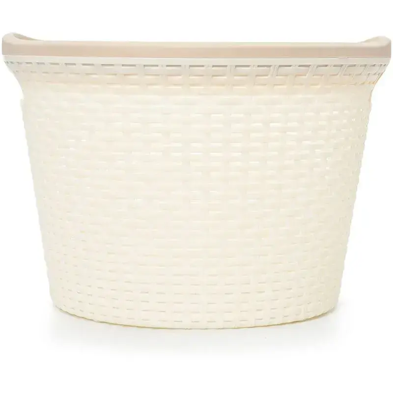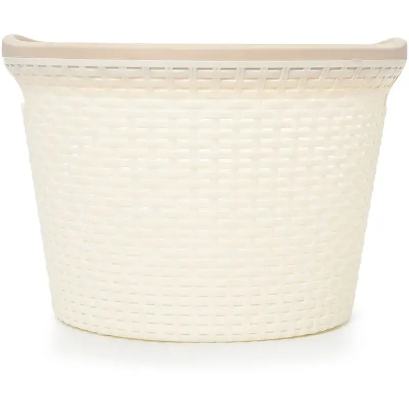Изготовлен из экологичного пластика без резкого запаха. Расширяющаяся кверху форма облегчает загрузку, а гладкая внутренняя поверхность предотвращает зацепки ткани. Совместим с большинством стандартных стеллажей и полок.