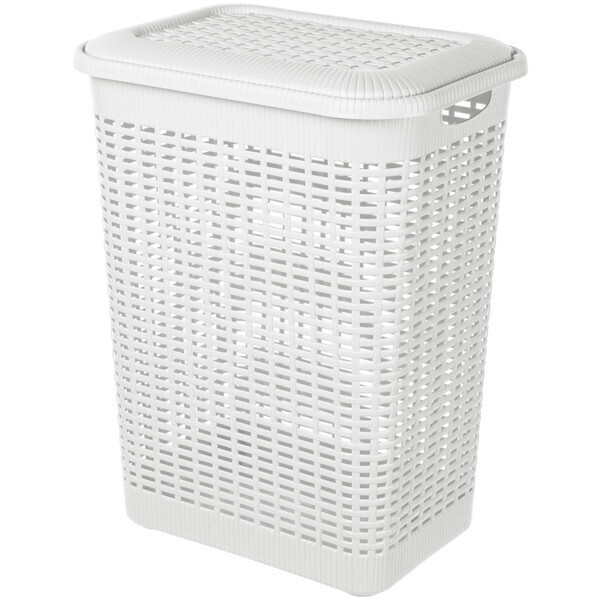 Корзина изготовлена из прочного пластика, что обеспечивает долговечность и надежность в использовании. Она оснащена удобными ручками с обеих сторон, что позволяет легко переносить её даже с полным содержимым. Сетчатая текстура и обдувные отверстия способствуют циркуляции воздуха, предотвращая накопление неприятных запахов.