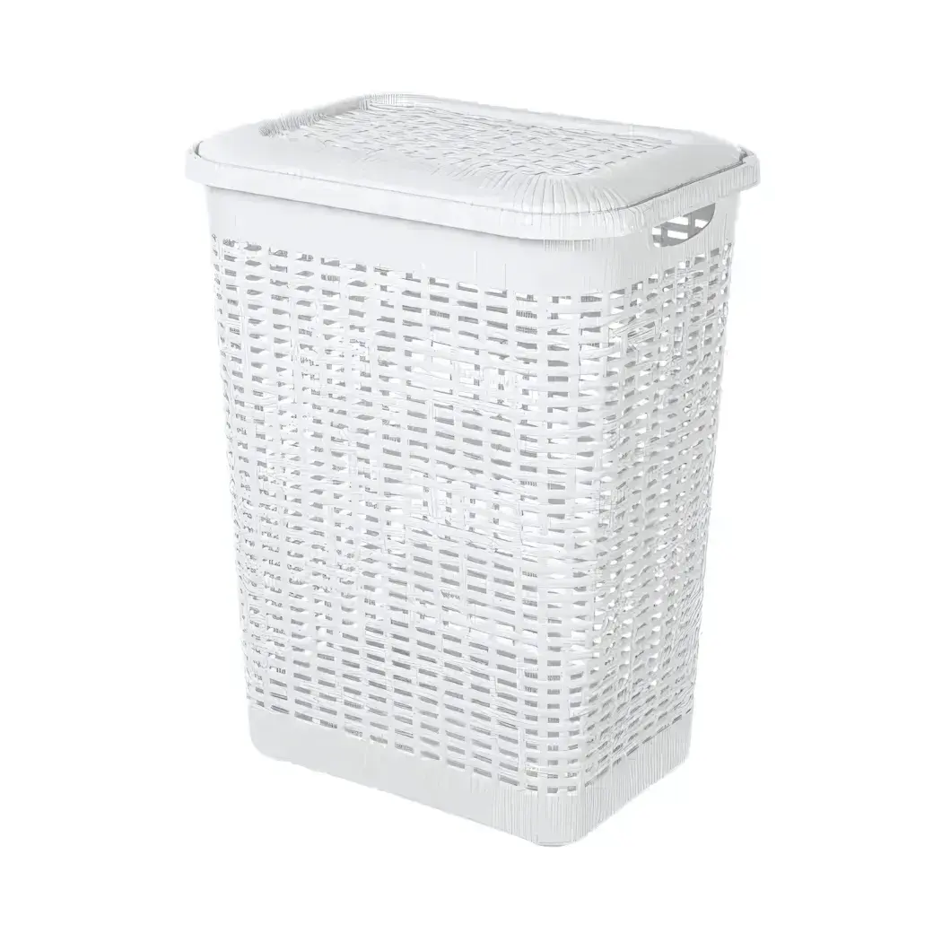 Пластиковая корзина с крышкой — практичное решение для организации пространства. Вместительный объем 50 литров позволяет компактно хранить грязное белье, банные принадлежности или бытовые мелочи.
