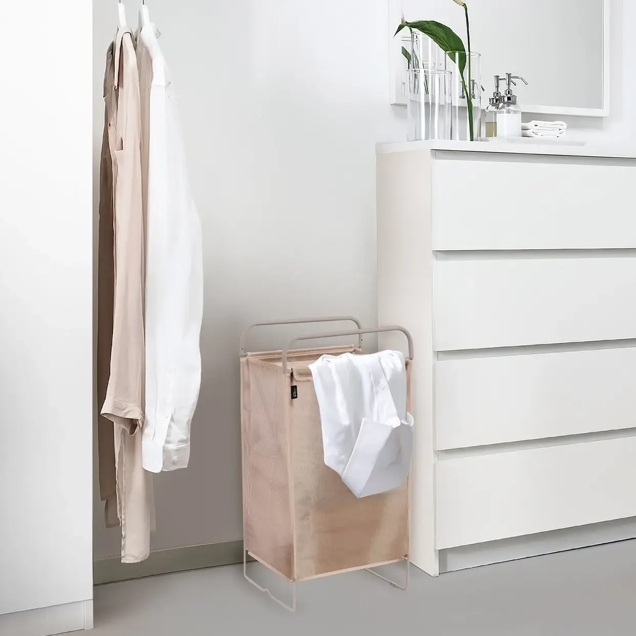 Корзина для белья 65л на металлокаркасе, бежевая, 'HSC3/БЖ', текстиль/металл