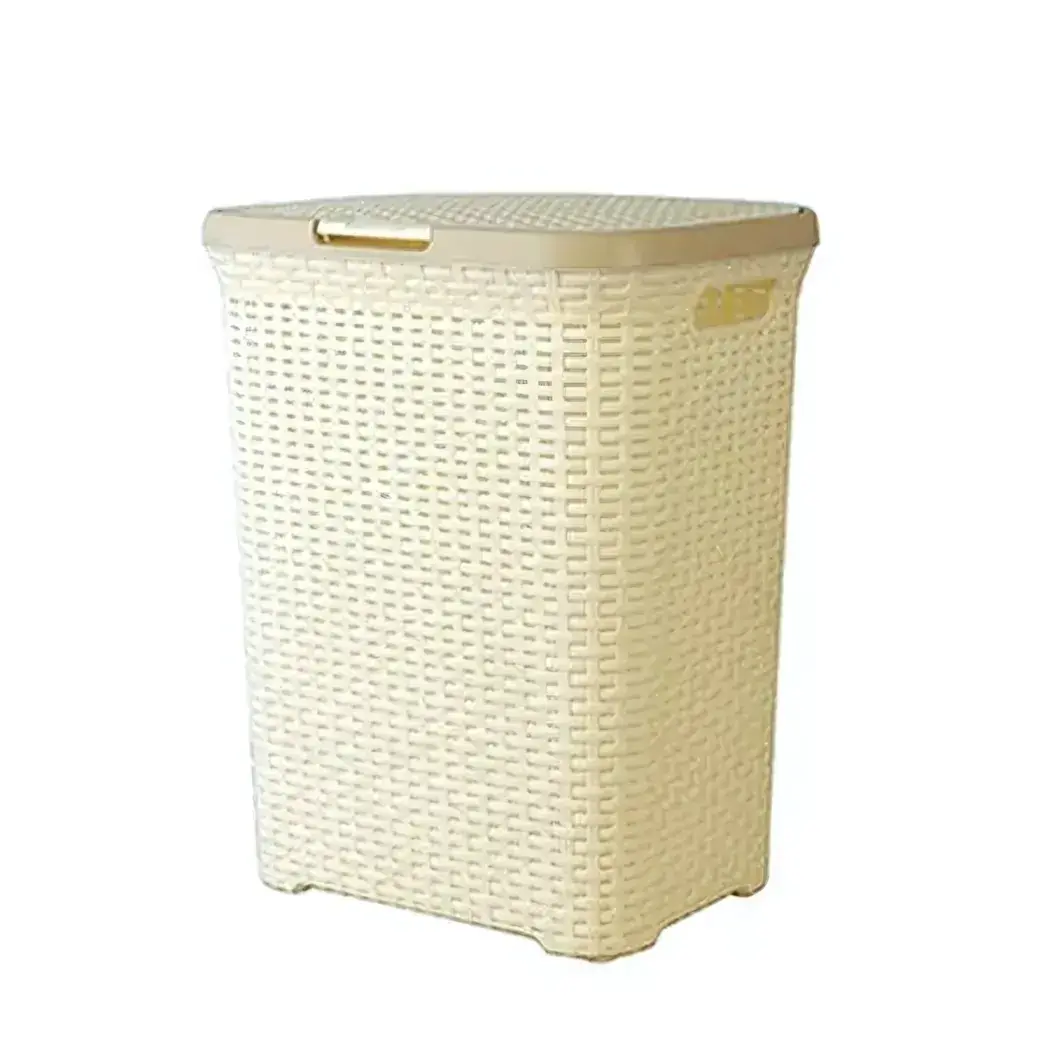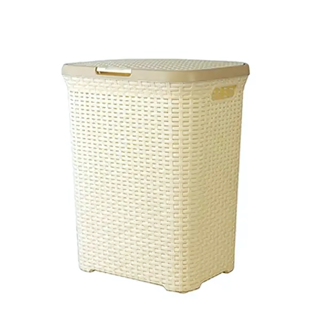 Пластиковая корзина для белья с эргономичной крышкой сочетает функциональность и эстетику плетеной текстуры. Идеальный выбор для тех, кто ценит аккуратное хранение вещей и стремится создать уютную атмосферу в ванной комнате.