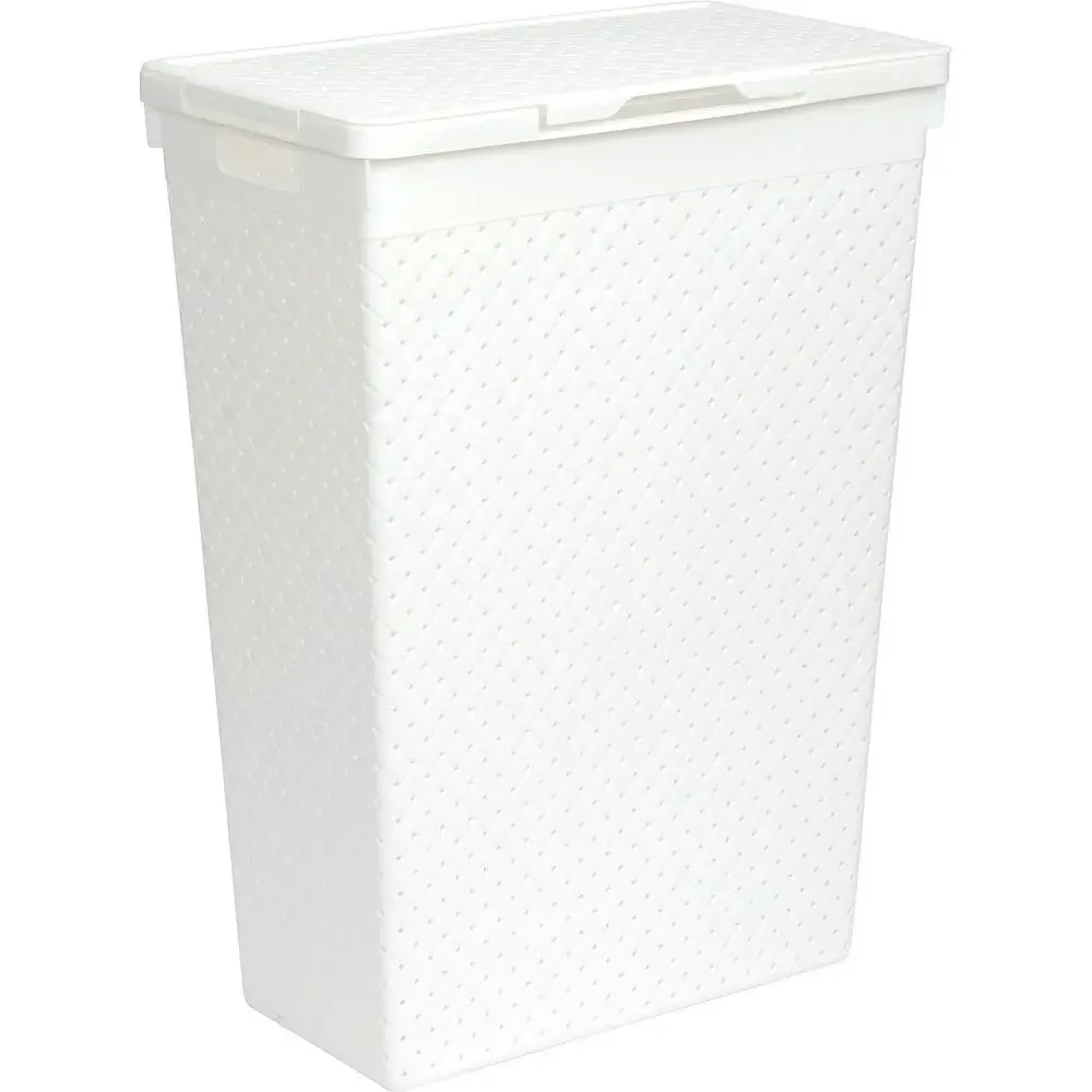 Корзина для белья Береста узкая с крышкой 50л (белый)