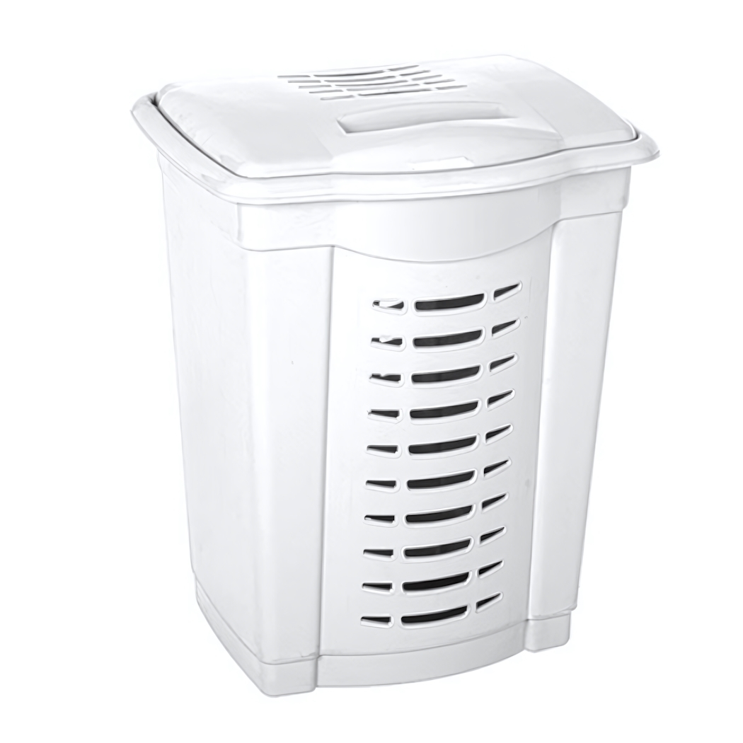 Корзина для белья с крышкой, 50л, пластик, белая, вентиляционные отверстия