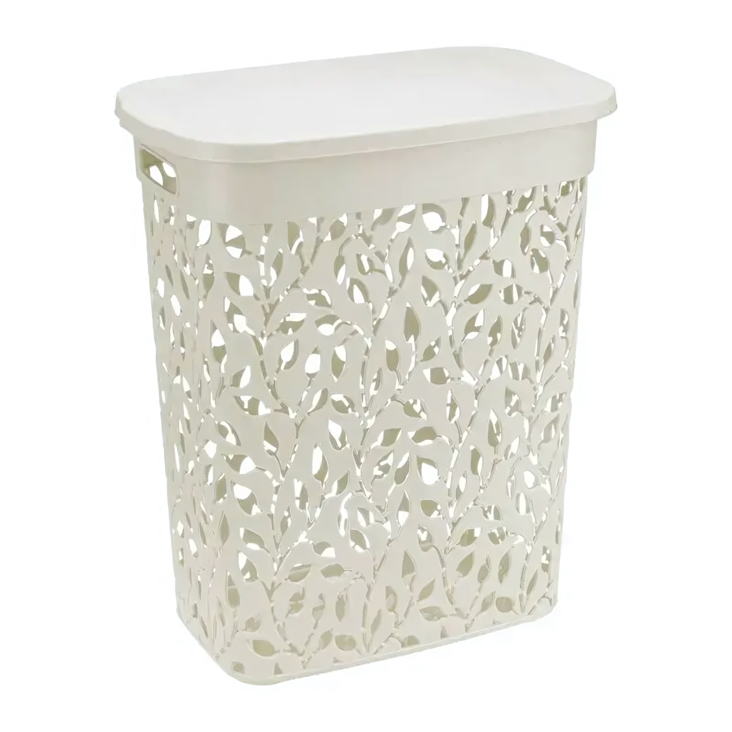 Корзина для белья 'ФЛОРА' 35л, белый ротанг, с крышкой, пластик