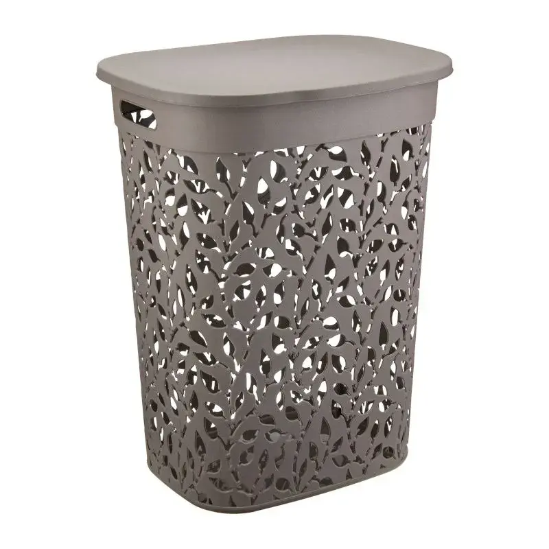 Корзина для белья 'ФЛОРА' 55л, перфорация с узором, французский серый