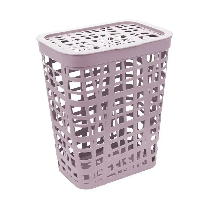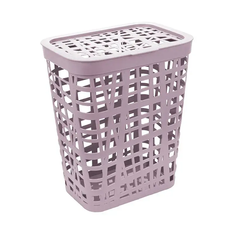 Корзина для белья пластиковая 32л, комплект 5 штук, сетчатая вентиляция, цвет лавандовый