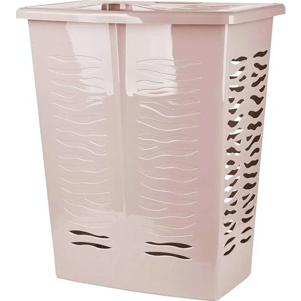 Корзина оснащена откидной крышкой, которая открывается на 270 градусов, что позволяет легко получать доступ к содержимому. Благодаря широкому канту по верхним краям, корзину удобно поднимать и переносить. Вентиляционные отверстия, расположенные на боковых и задней стенках, обеспечивают циркуляцию воздуха, предотвращая накопление неприятных запахов и сохраняя свежесть белья.
