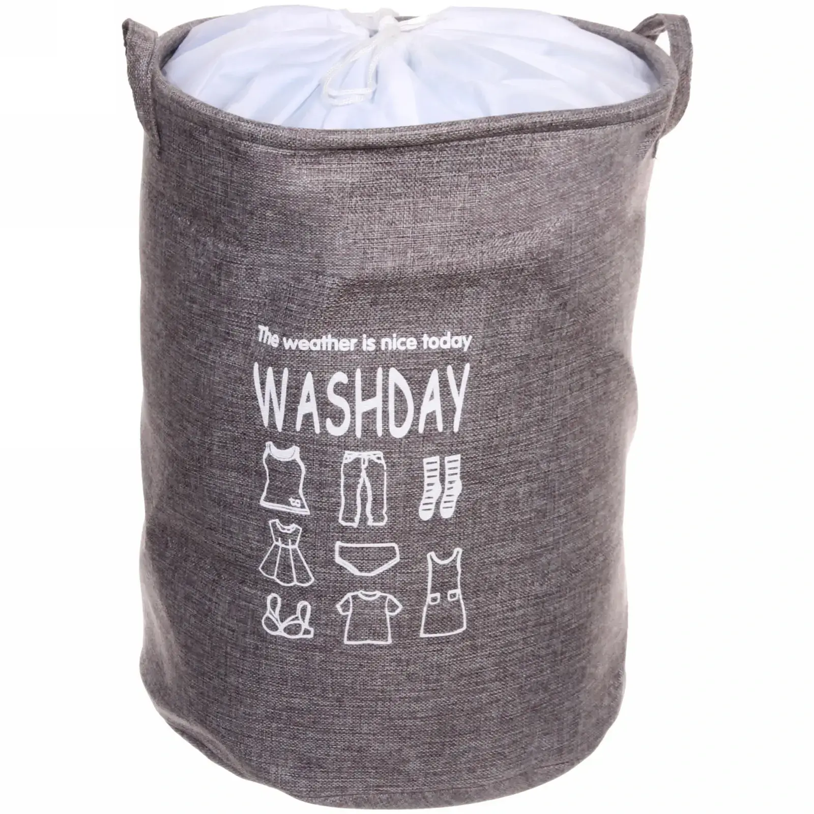 Размеры корзины составляют 50 см в высоту и 35 см в диаметре, что делает её достаточно вместительной для хранения большого количества вещей. Серый цвет и текстурированная поверхность придают корзине современный вид, а надписи и иконки на внешней стороне добавляют игривости и оригинальности. Эта корзина станет не только функциональным, но и стильным элементом вашего дома.